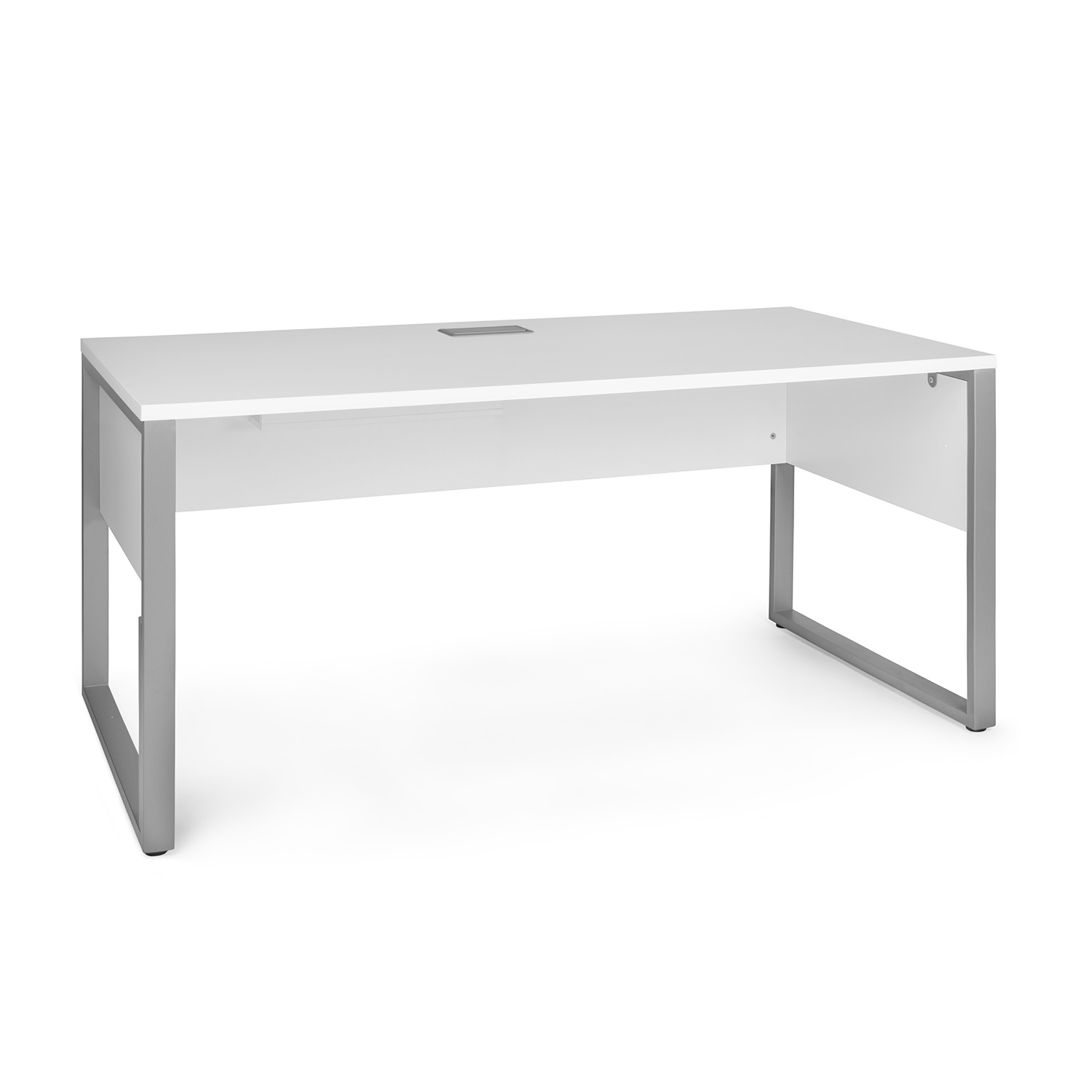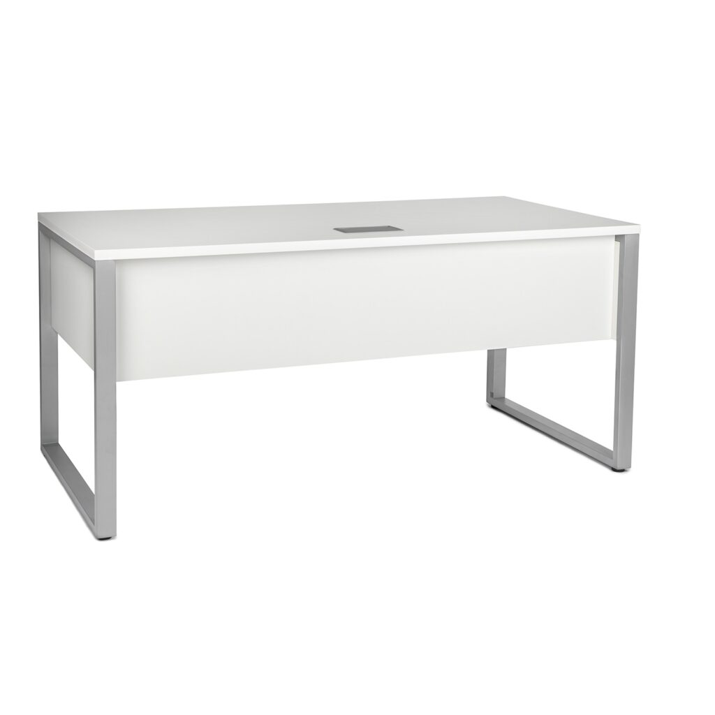 The Lunada 63'' Desk - sturdy enough for the commercial office and attractive enough for home - is built from durable materials and supported by an all steel frame and steel legs. The white melamine desktop has a pleasant feel and is virtually stain-proof.