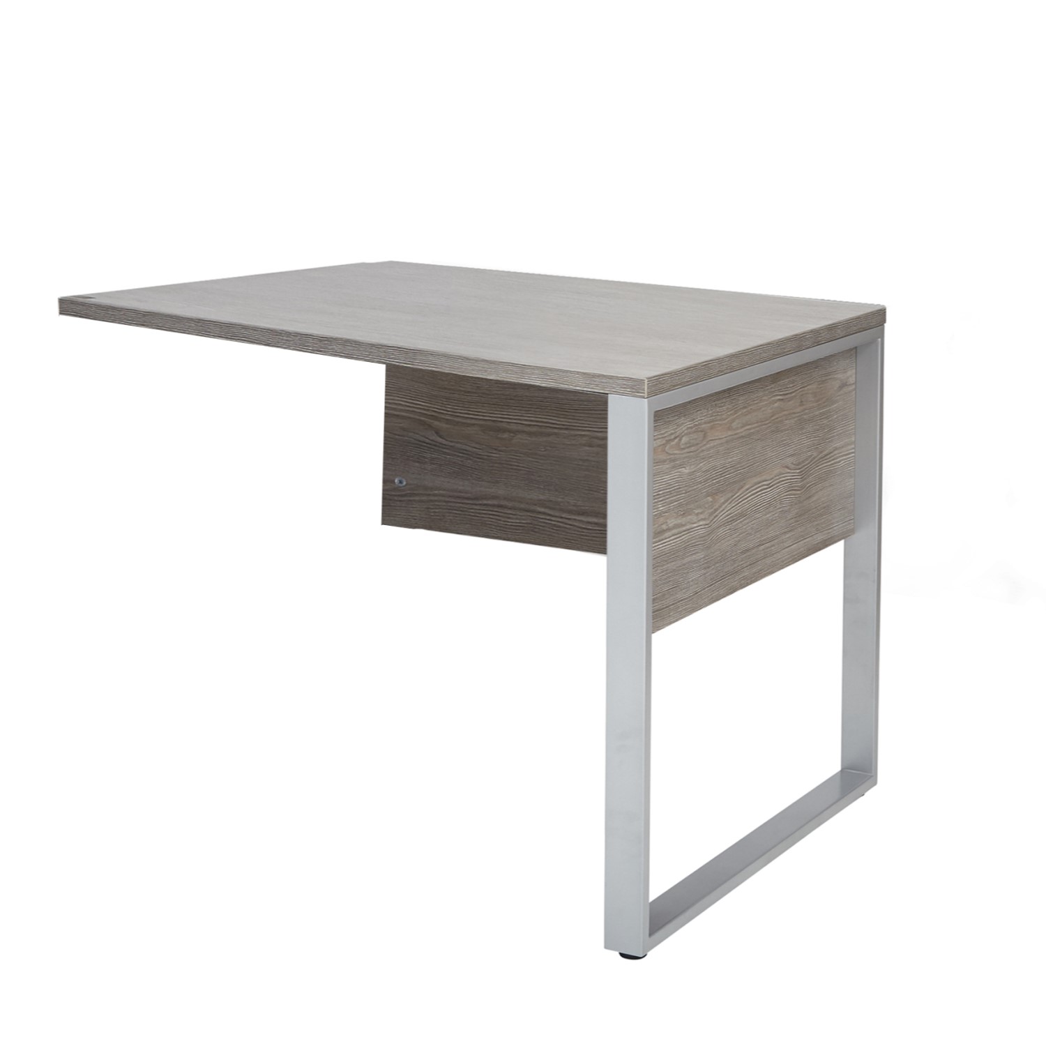 [0] => The Lunada Return Desk is available in grey woodgrain melamine with a grey steel base. The Lunada return complements desks in the Lunada collection, extending the workspace for added comfort and productivity.