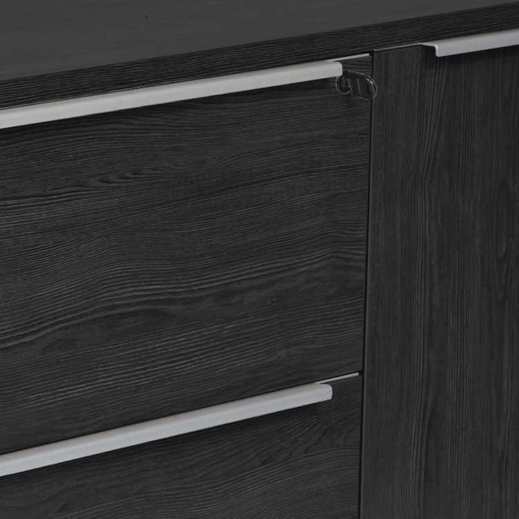 The Lunada Storage & Filing Credenza is available in espresso melamine with a grey steel base and attractive steel accents. This minimalist, contemporary credenza has two spacious drawers for files and personal belongings, as well as two cabinet spaces. The file drawers can be locked to secure files and valuables.