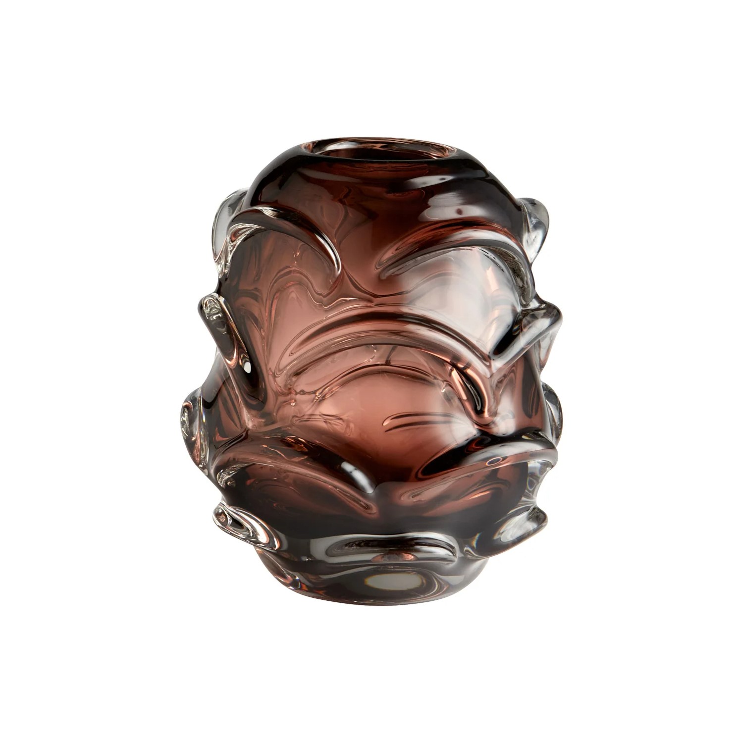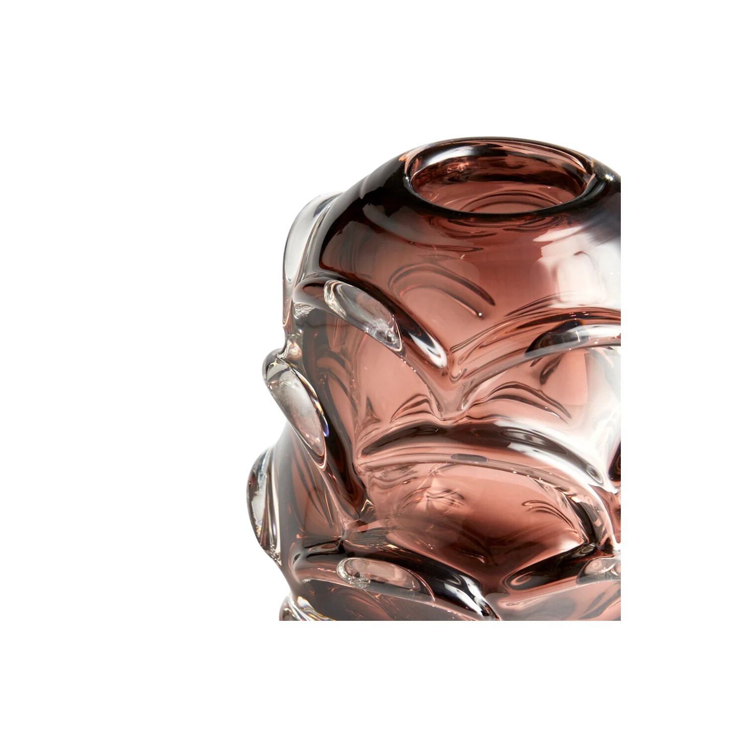 Inspired by vintage floral designs, the Lunaria Vase has layers of three-dimensional, shaped accents along its body that resemble flower petals or crescent moons. This vase is made of hand-blown duplex glass and boasts a rich purple color that is deeper at the top and bottom and lighter in the middle. Lunaria's short, rounded shape makes it ideal for displaying a small yet elegant bouquet.