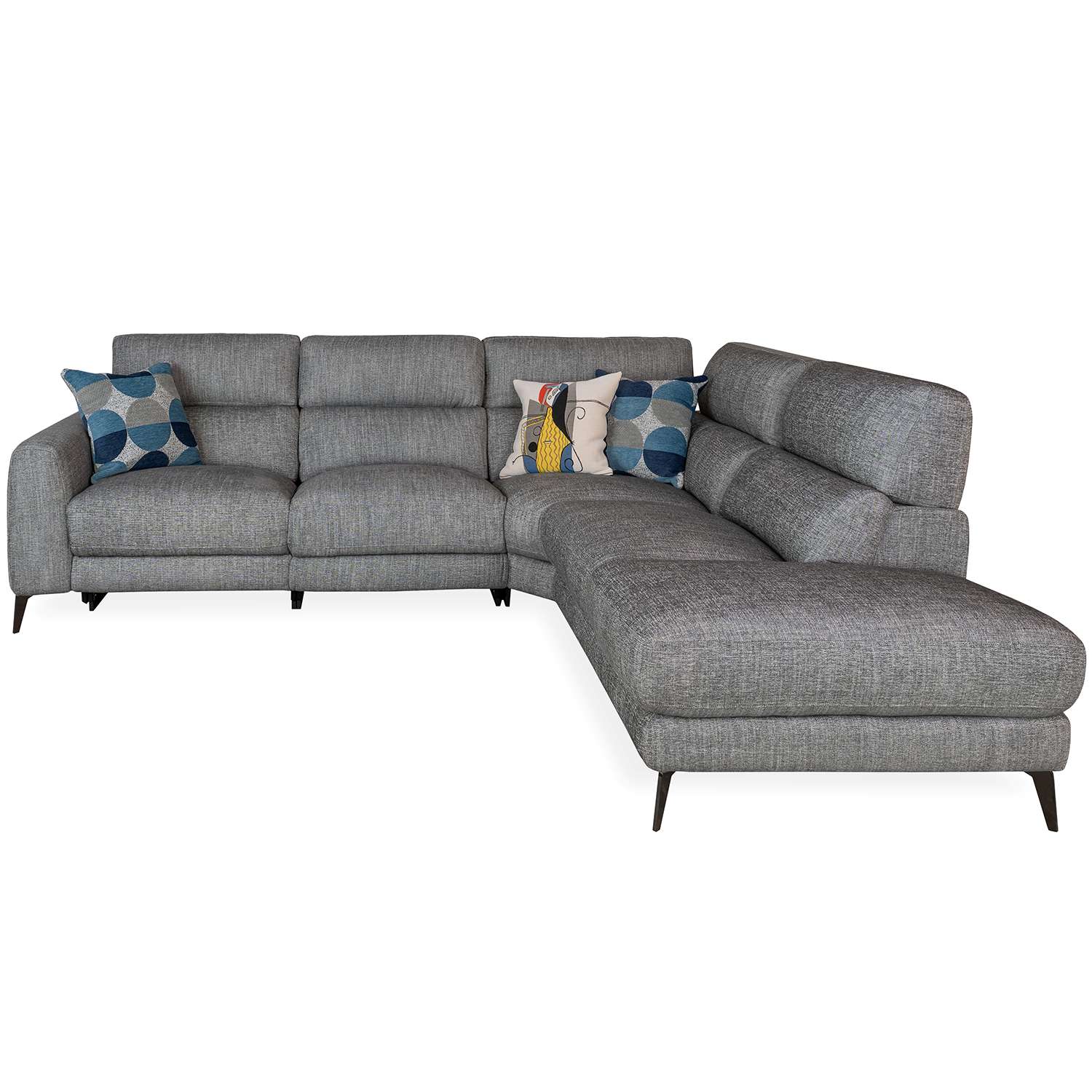 The Mackenzie Power Sectional has clean, contemporary style, with two power motion seats, soft charcoal grey fabric, and plush cushions with a buoyant feel. The power seats allow you to perfectly adjust the reclining angle of the footrests and headrests to your preference, while no-sag spring support in the cushioning ensures lasting comfort. Angular metal legs and a built-in USB port add the finishing touches to this timeless yet functional sectional.