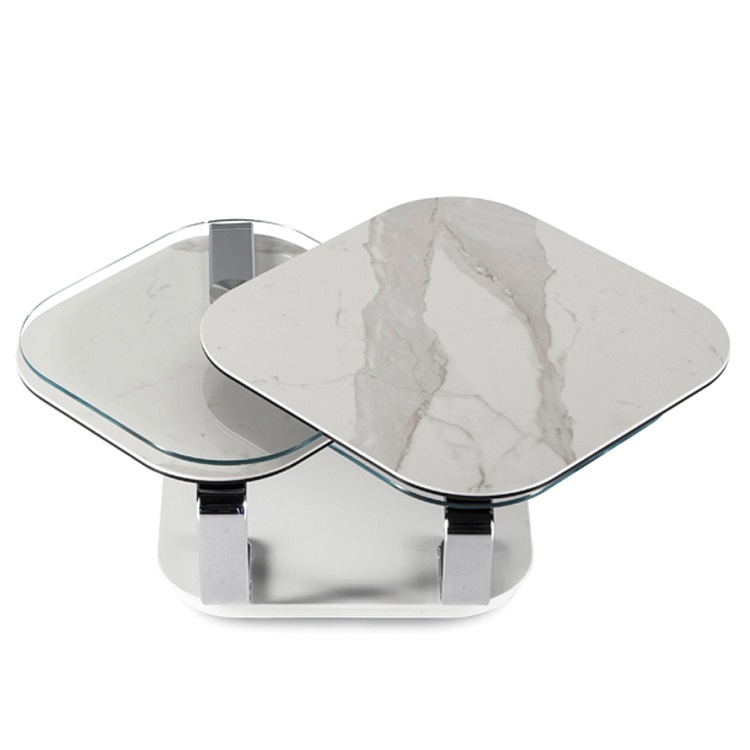 [0] => madison cocktail table, base #10 white, supports #37 chrome, 2 tops statuario ceramic marble and 2 tops natural oo glass