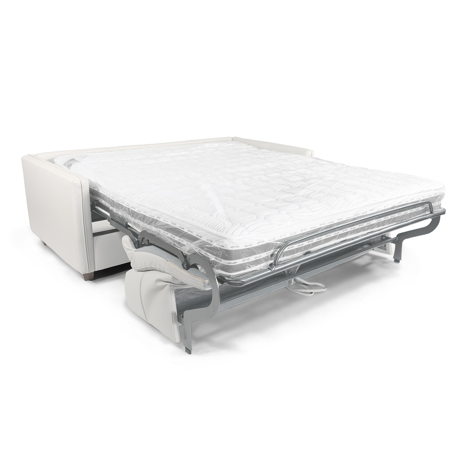[0] => The Magic Maxi Sleeper Sofa, made in Italy, brings tailored yet comfortable style to your bedroom, office, or guest room with its detailed stitching patterns that emphasize the off-white romagna leather accents across the backrests and arms. With a simple pull-open mechanism, this piece transforms easily from a wide, firm sofa to a plush bed. Relax comfortably onto the memoflex mattress, which is made with breatheable 3D fabric and has a 1'' layer of memory foam that adds just the right amount of comfort and firmness. Pillow compartments are built into the backrest as the sleeper unfolds.