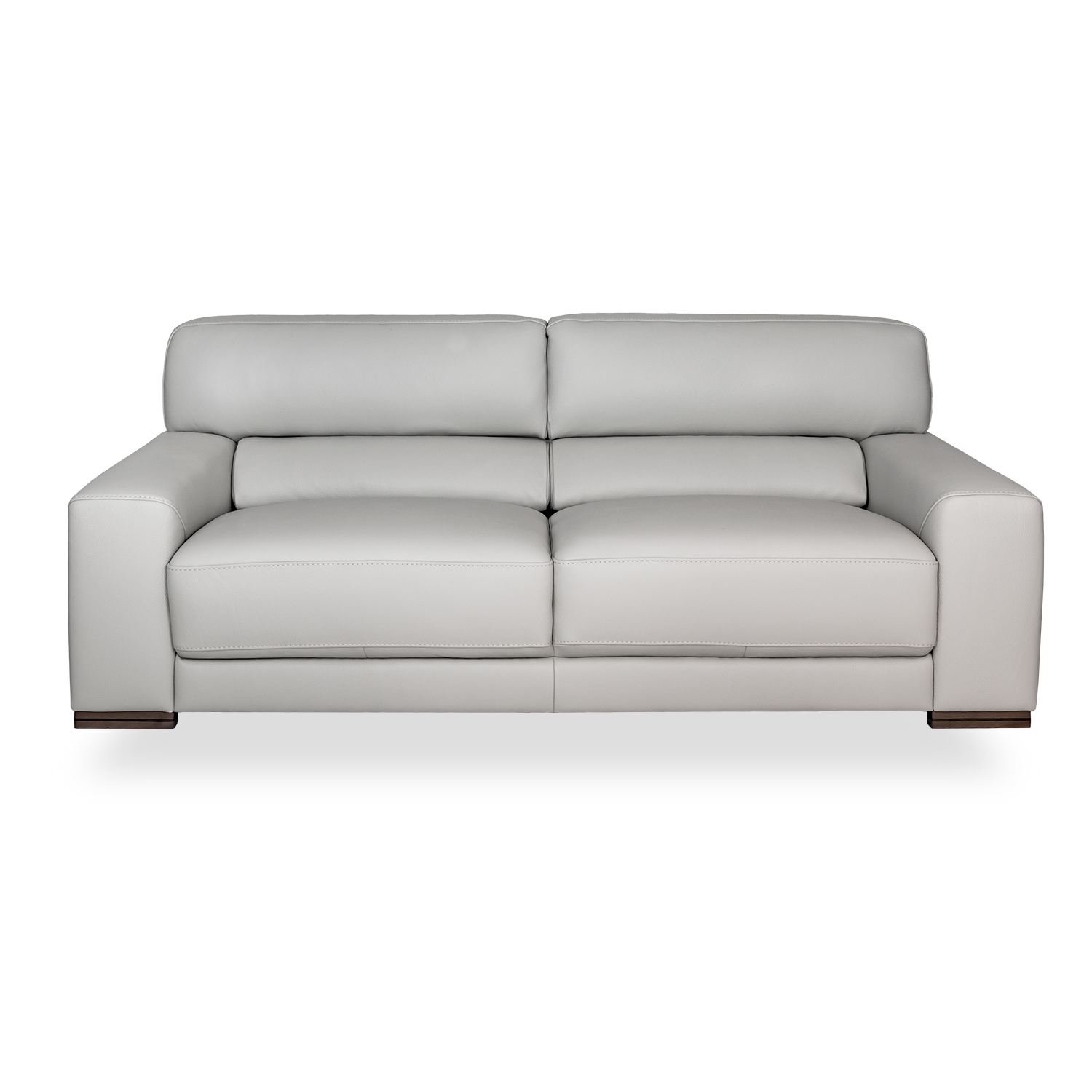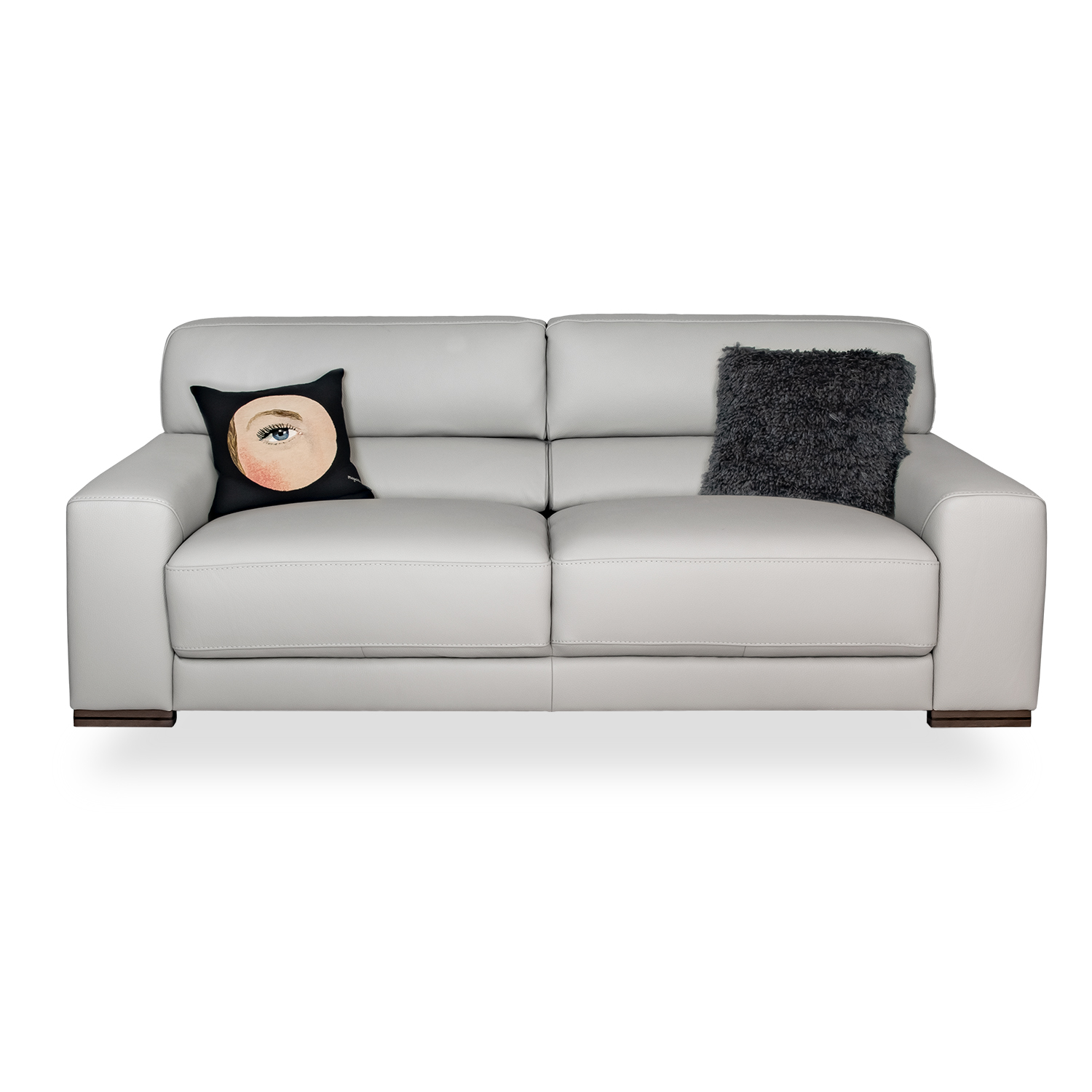 The Marco Sofa, by Incanto Italia, will add a strong and stately presence to any living space. Upholstered in luxurious Mason light grey leather, this sofa has ample seats with a bolstered feel and backrests with angled lower cushions. Marco has a distinctive envelope-like seam design on its sides, and wooden block feet with a metal stripe accent. You and your guests will love sinking into this sofa to relax in front of the TV, or drifting in for a brief watch while sitting on the flat armrests that can also double as seats.