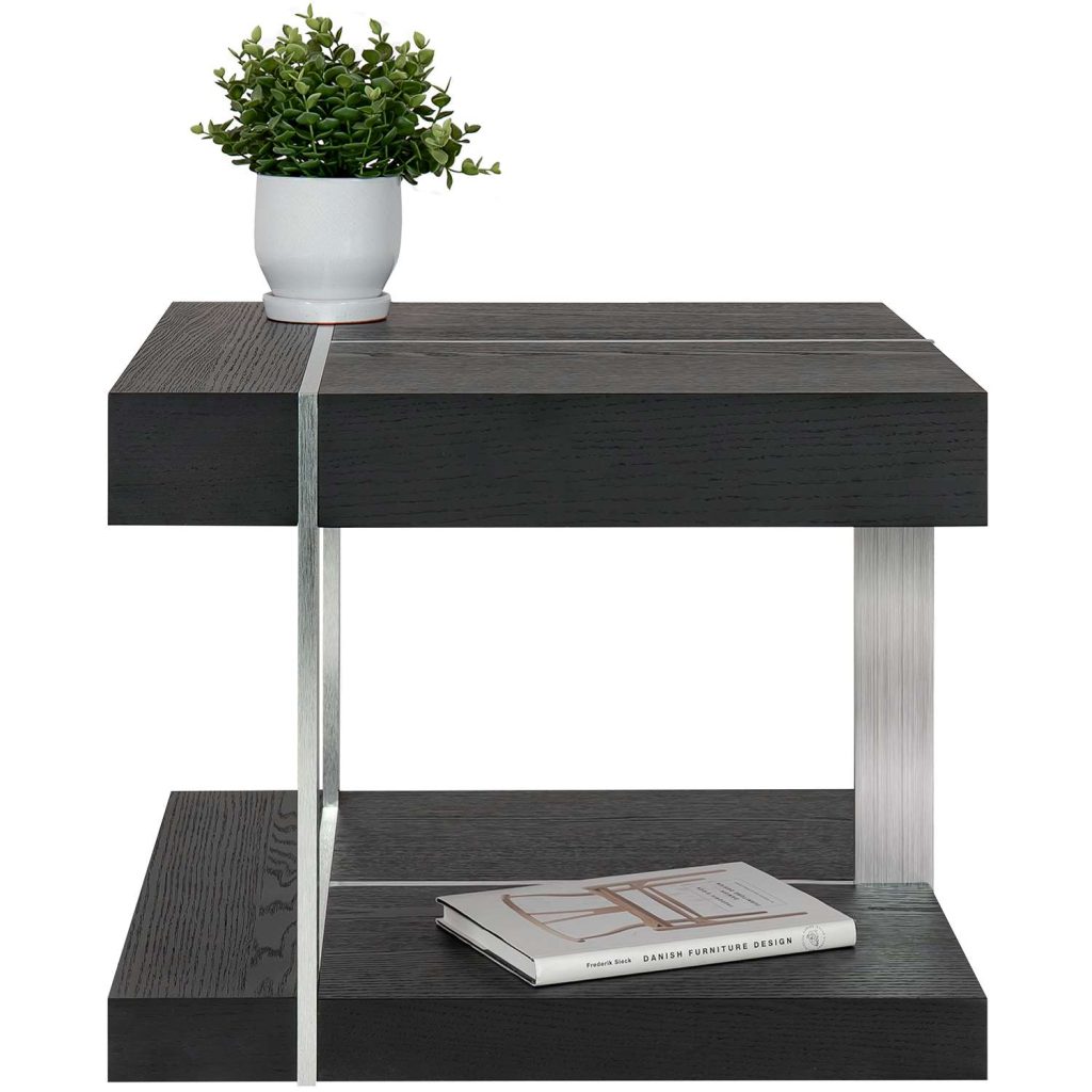 [0] => marconi end table black oak veneer w/ silver brushed alum legs a01, 23.5x23.5x19h