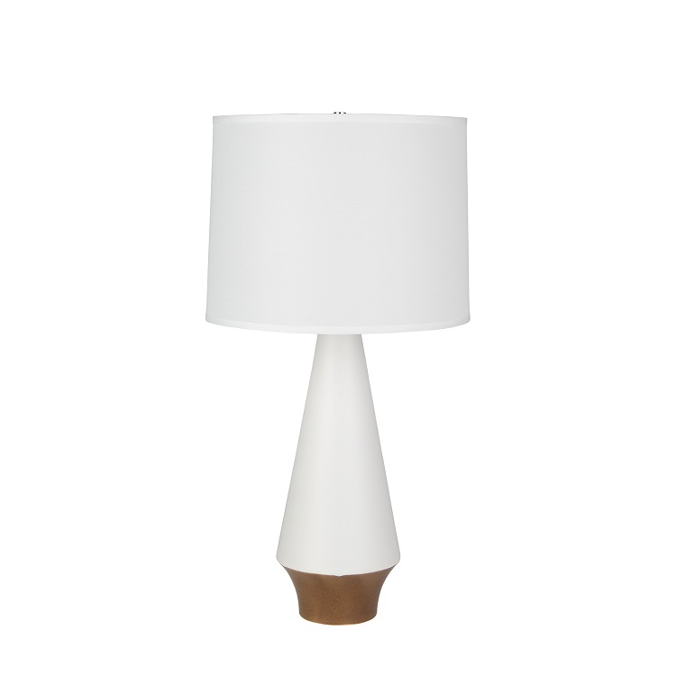 The Marker table lamp is simple and elegant with a crisp white shade and smoothly angled white base.