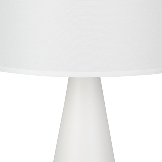 [0] => The Marker table lamp is simple and elegant with a crisp white shade and smoothly angled white base.