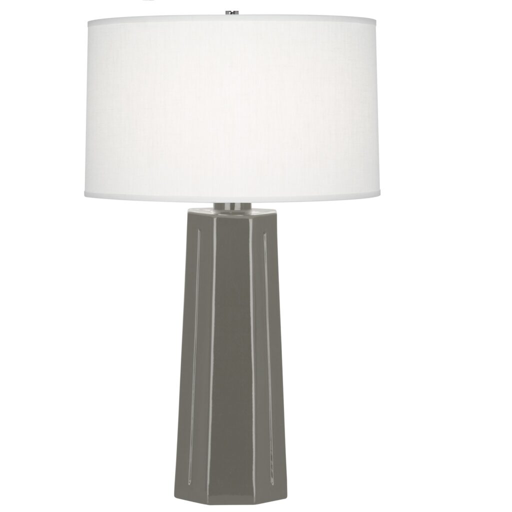 The Mason Table Lamp features an oyster linen shade and an ash glazed ceramic base. This piece has a gently tapered geometric design that is thoroughly modern and ideal for adding strong, bold lines to any environment. Mason has a 3-way switch and takes one 150W bulb (max), type A.