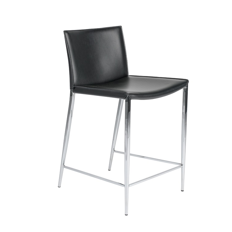 [0] => The Max II Counter Stool features a chrome frame and sleek Ecocuoio bonded black leather that brings style and structure to your counter or counter-height table. Max's clean lines and distinct angles complement the squared tubular legs, creating a contemporary design suitable for a wide variety of environments.