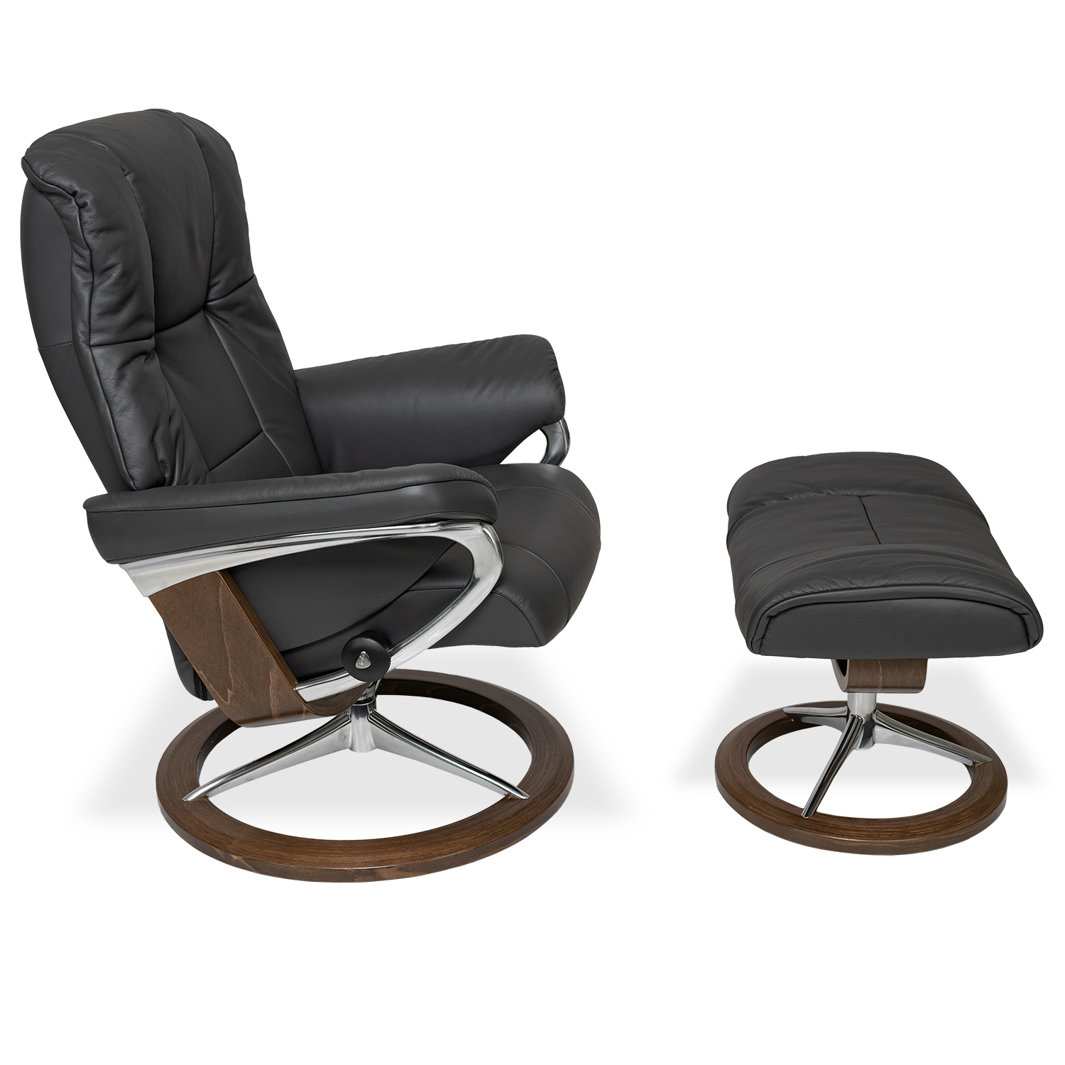[0] => The Mayfair Small Chair and Ottoman, designed by Stressless® of Norway, has a laid-back, elegant design with cutting-edge comfort technology. Available with a walnut Signature base and rock Paloma leather, this chair has an amply padded back and seat cushions with a lightly tufted stitching pattern that creates a tailored feel and quilted look. Mayfair is equipped with Plus™ and Glide systems, which allow the chair to provide continuous support for your head and lower back, while adjusting the reclining angle based on shifts of your body. The Signature base is built with Stressless BalanceAdapt™, which equips the chair with a gentle rocking motion that moves with you. Mayfair will bring timeless style and classic Stressless® comfort to your home.