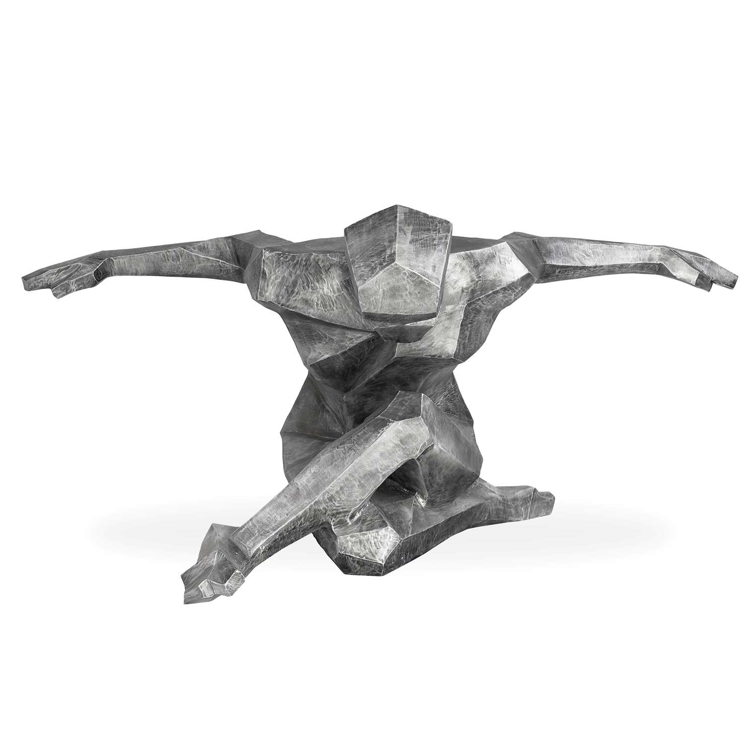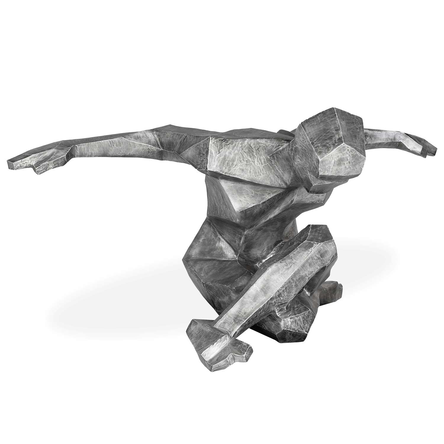 The Meditation Man Sculpture depicts a figure sitting with his legs crossed, arms outstretched, and torso leaning forward. This dynamic, life-size statue has a body formed from geometric planes that produce a modern, Cubism-inspired look. Made of aluminum with a lightly distressed finish, Meditation Man is suitable for indoor or outdoor use and will add an edgy yet timeless accent wherever he is placed.