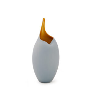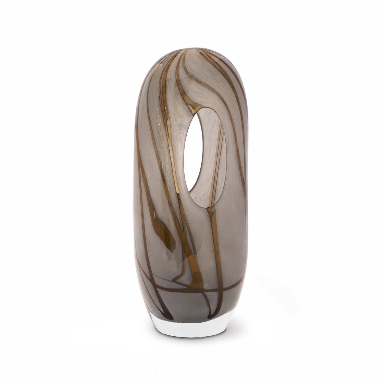 The Medium Swirl Vase features amber and grey colored glass tubes formed together in a molten state to create this beautiful art glass. A unique hole cut straight through the middle helps you to display your flowers at an angle for a thoroughly modern look.