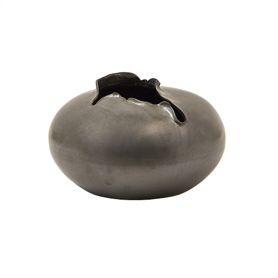 The Medium Tambora Bowl is a minimalist, contemporary piece made of ceramic with a black metal finish. The opening mimics the look of folded metal, its uneven edge contrasting against the smooth surface of the bowl for an industrial feel. The Tambora Bowl is a stylish accent piece for any space.