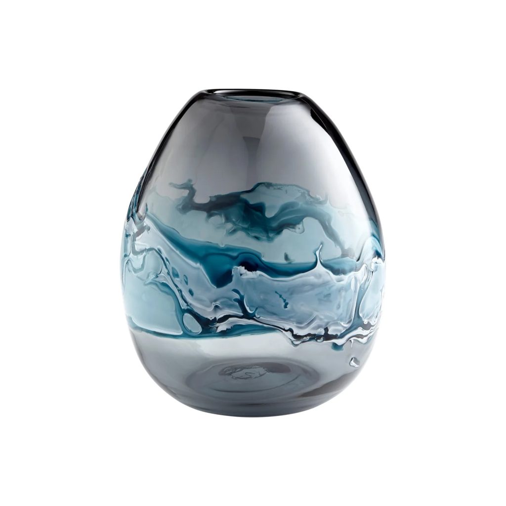 [0] => Wrought in glass with a teardrop shape, the Medium Mescolare Vase features shades of soothing blue and an organic pattern reminiscent of waves. Dark grey sections at the top and base form the backdrop for a central band whose swirled design evokes the movement of water. Dreamy and intricate, the Mescolare Vase will infuse your interior with the freshness of an aquatic landscape.