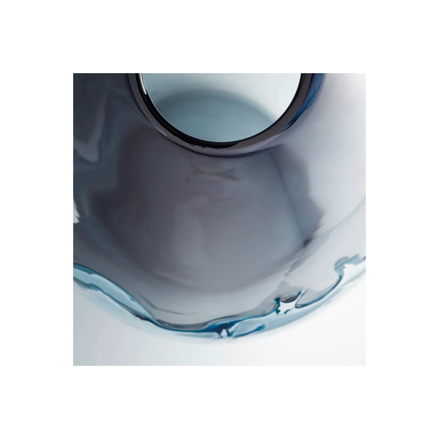 Wrought in glass with a teardrop shape, the Medium Mescolare Vase features shades of soothing blue and an organic pattern reminiscent of waves. Dark grey sections at the top and base form the backdrop for a central band whose swirled design evokes the movement of water. Dreamy and intricate, the Mescolare Vase will infuse your interior with the freshness of an aquatic landscape.