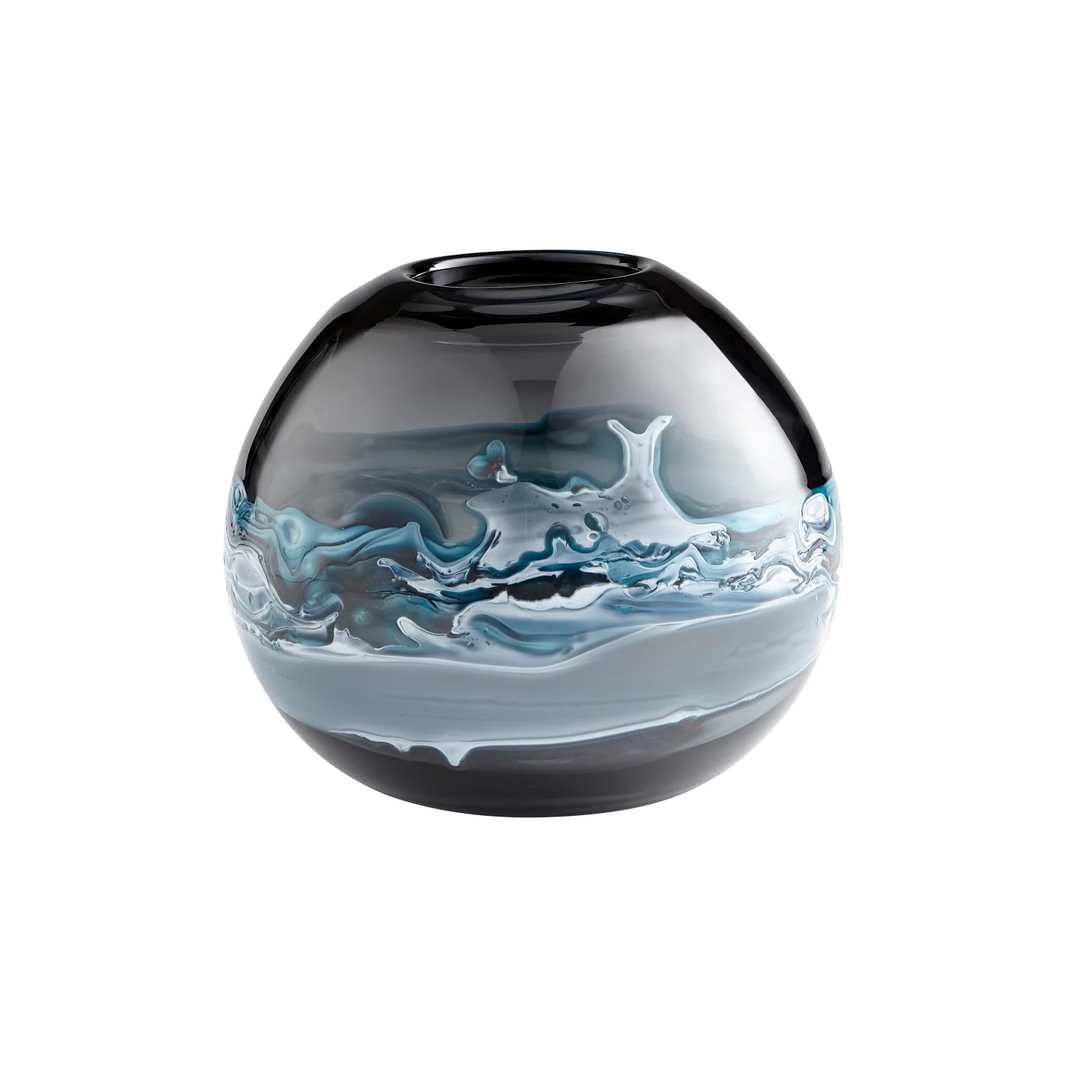 [0] => Wrought in glass with a spherical shape, the Small Mescolare Vase features shades of soothing blue and an organic pattern reminiscent of waves. Dark grey sections at the top and base form the backdrop for a central band whose swirled design evokes the movement of water. Dreamy and intricate, the Mescolare Vase will infuse your interior with the freshness of an aquatic landscape.