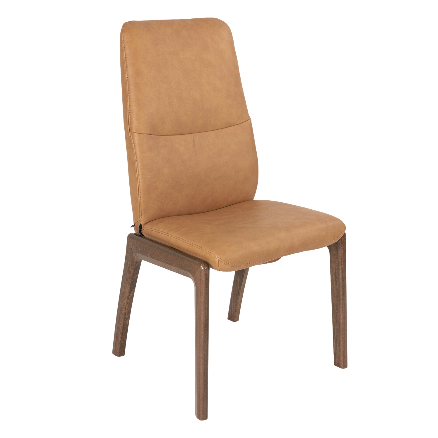 [0] => The Mint High Back Dining Chair by Stressless® of Norway is available with taupe Paloma leather upholstery and walnut legs. Expertly crafted with your comfort in mind, this chair features a soft, inviting design and innovative flexibility in the seat and back that allows the backrest to adjust to slight movements in your body, all while providing support for your spine.