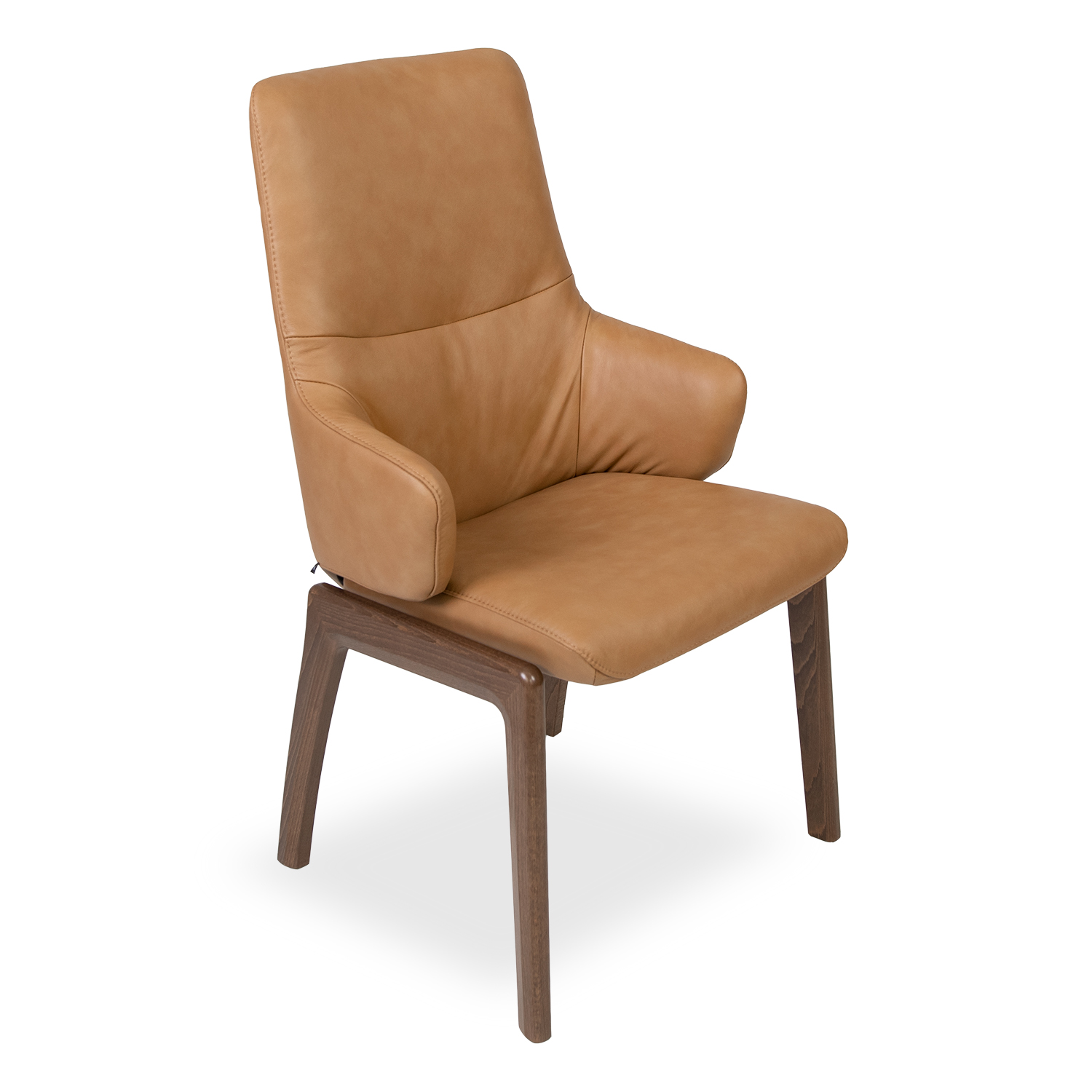 [0] => The Mint High Back Dining Chair with Arms by Stressless® of Norway is available with taupe Paloma leather upholstery and walnut legs. Expertly crafted with your comfort in mind, this chair features a soft, inviting design, and innovative flexibility in the seat and back that allows the backrest to adjust to slight movements in your body, all while providing support for the spine.