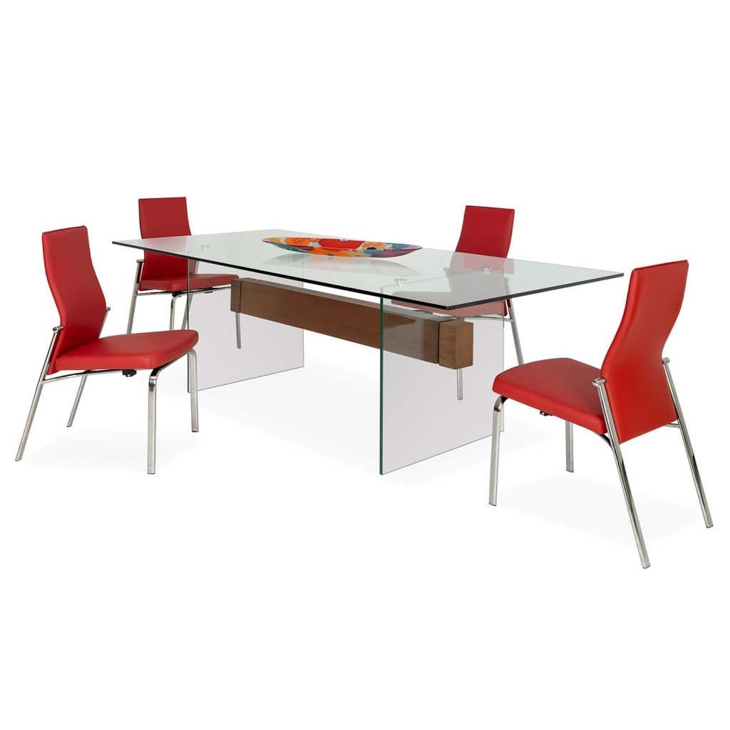 [0] => mirage dining table walnut w/polished stainless steel accents/ tempered clear glass top 86x39 glfa