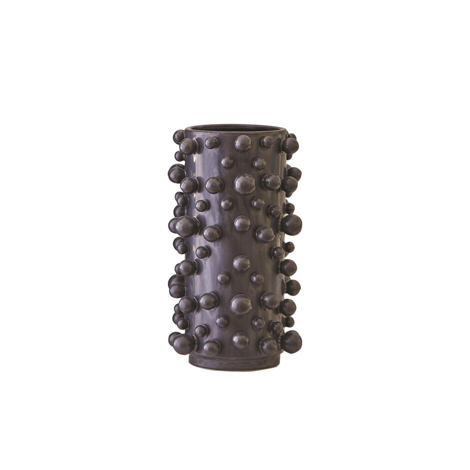 [0] => The Molecule Vase is crafted from ceramic and features a tall, cylindrical form with spheres clustered across the surface in varying sizes. The graphite finish creates a modern and minimal look, letting the texture take center stage. Each vase is skillfully made using a single mold, resulting in a consistent yet organic feel. Display it on its own or use it to add contrast and visual interest to a shelf, console, or tabletop arrangement.