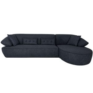 [0] => Enhance your comfort with the Momo sectional, which sports a contemporary, organic design suitable for any modern living space. Made in Italy, Momo features curved lines, winged armrests, and a rounded left-facing chaise, all of which contribute to a cozy, enveloping feel. Textured, blue-grey fabric upholstery is accented by dark grey Lycra® piping that outlines Momo's profile for a tailored finish, and four included pillows offer additional support. With its rounded design and inviting look, Momo effortlessly combines timeless elegance with modern comfort.