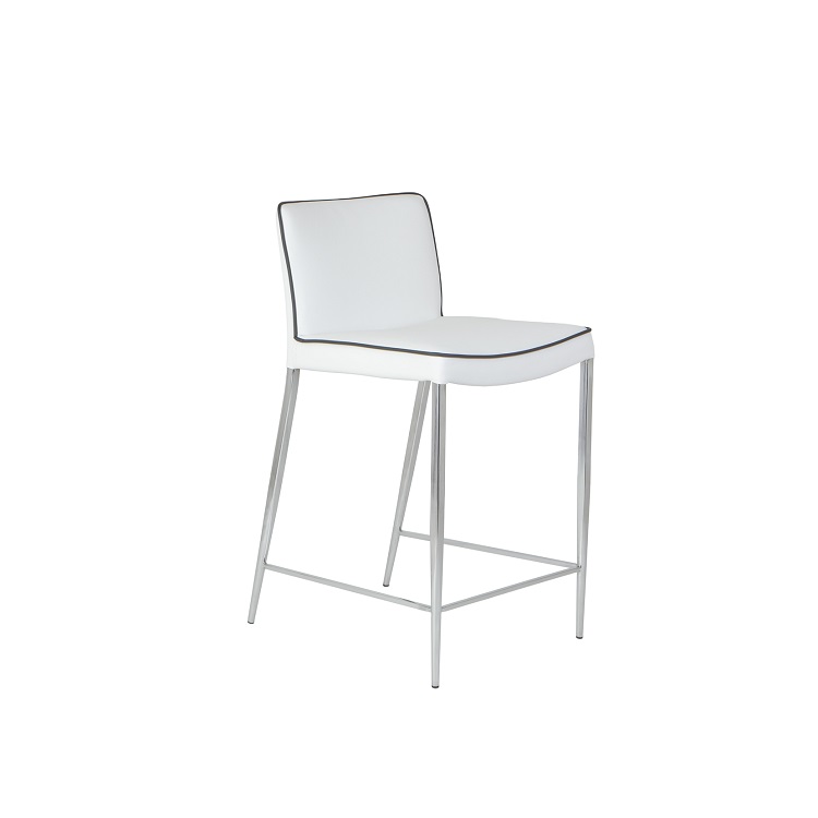 The Monica counter stool, available in white microfiber with black piping, is an attractive contemporary stool with clean lines and minimalist style. The Monica chair fits in well with a variety of design envionments.