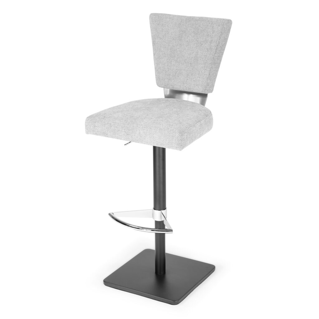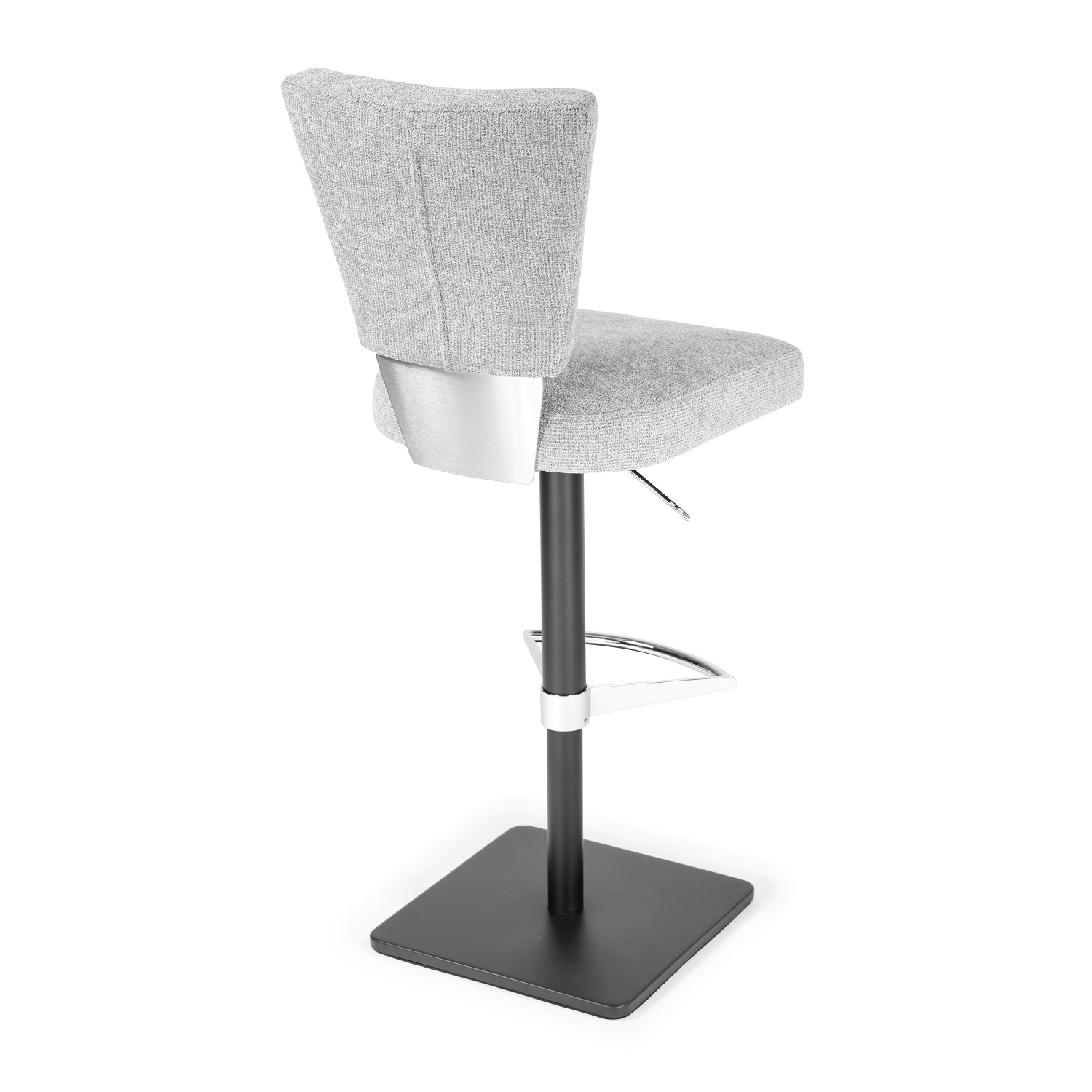 The Monroe barstool, available in sleet grey Samson fabric, is a sleek and contemporary barstool with clean lines and vintage-inspired flair. Monroe features a champagne-plated metal accent along its backrest that adds design value and comfort by allowing the back to shift and flex with your body. This barstool is height adjustable via a hydraulic lift column.