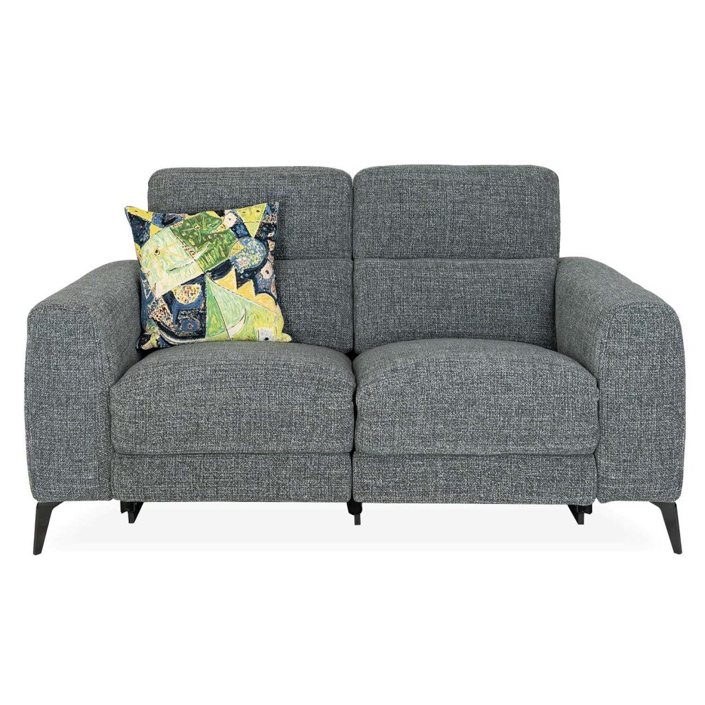 The Morgan Loveseat has clean contemporary style, with two power motion seats, gunmetal Chacha fabric, and a plush, comfortable feel with rounded lines that contrast the angular metal legs. The power seats allow you to perfectly adjust the reclining angle of the seat to your preference, while the no-sag spring support adds additional comfort. Morgan's grey fabric has a classic faded look and is stain-resistant and liquid-repellent.