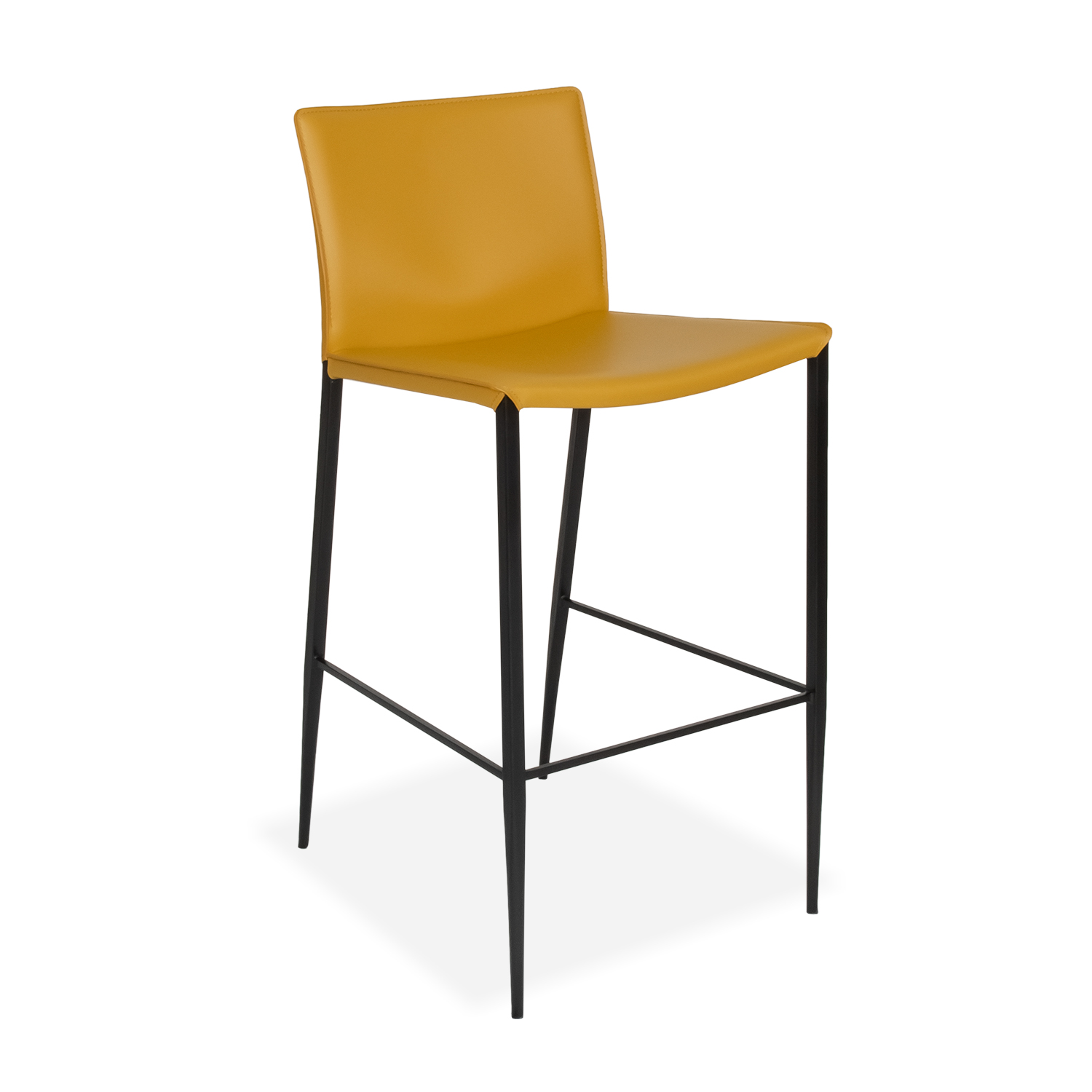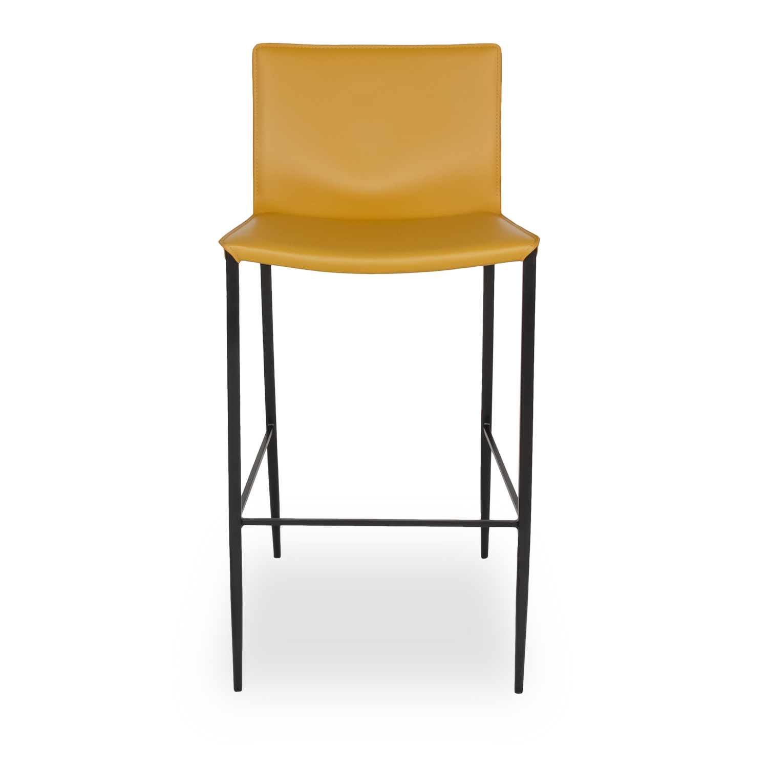 [0] => morris barstool mustard yellow 06 regenerated leather. black piping on back. matching stitch. black legs