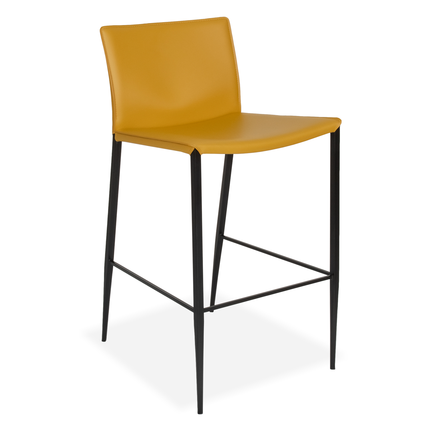 The Morris Counter Stool has a clean, minimalist look, with a black brushed stainless steel frame and regenerated leather upholstery in mustard. Matching stitching and black piping on the back enhance Morris' simple elegance, while the slightly curved back hugs in toward the lower spine to boost your comfort. Morris is proof that, sometimes, less is more.