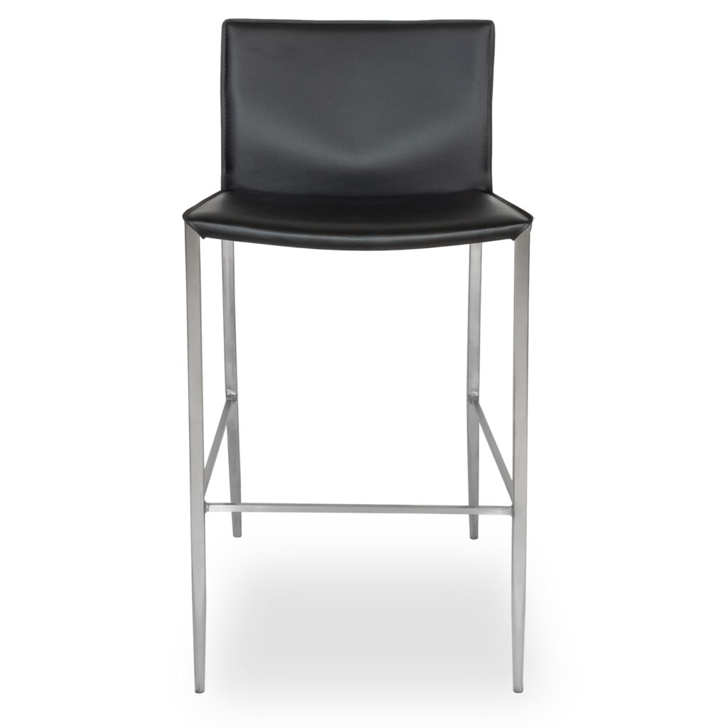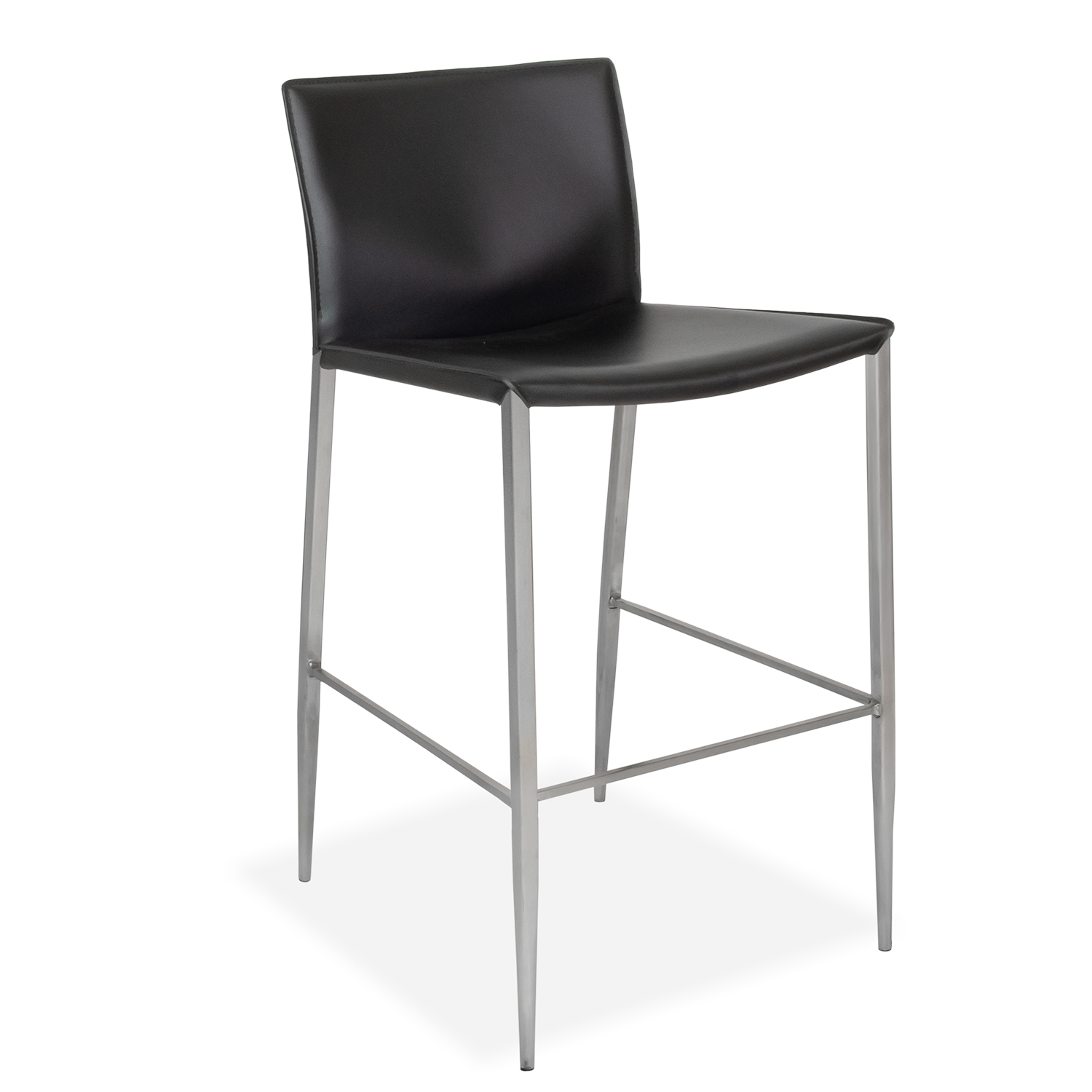 [0] => The Morris Counter Stool has a clean, minimalist look, with a chrome brushed stainless steel frame and regenerated leather upholstery in black. Matching stitching and black piping on the back enhance Morris' simple elegance, while the slightly curved back hugs in toward the lower spine to boost your comfort. Morris is proof that, sometimes, less is more.