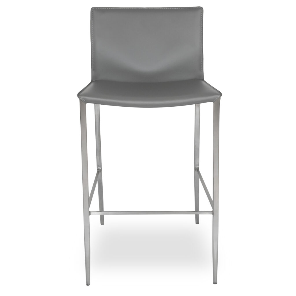 [description] => Morris Soft Counter Stool Grey Pu18 Leatherette. Matching Stitch. Brushed Stainless Steel Legs