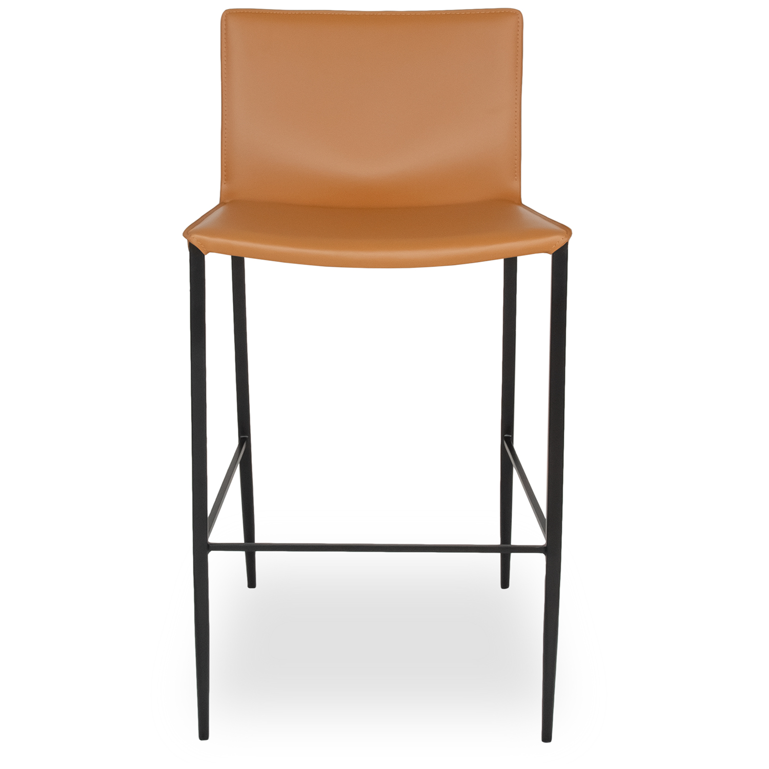 The Morris Counter Stool has a clean, minimalist look, with a black brushed stainless steel frame and regenerated leather upholstery in caramel. Matching stitching and black piping on the back enhance Morris' simple elegance, while the slightly curved back hugs in toward the lower spine to boost your comfort. Morris is proof that, sometimes, less is more.