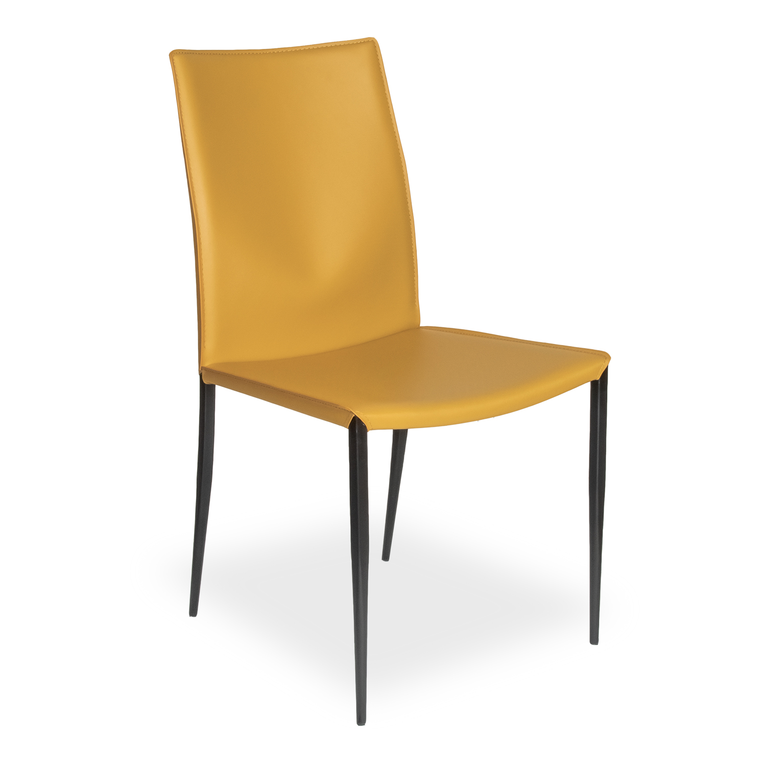 The Morris Side Chair has a clean, minimalist look, with black brushed stainless steel legs and regenerated leather upholstery in mustard. Matching stitching and black piping on the back enhance Morris' simple elegance, while the slightly curved seat back hugs in toward the lower spine to boost your comfort. Morris is proof that, sometimes, less is more.