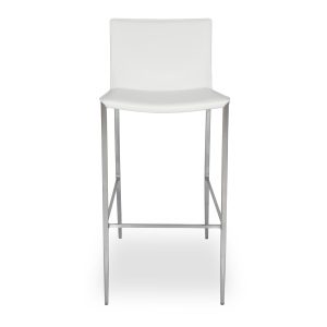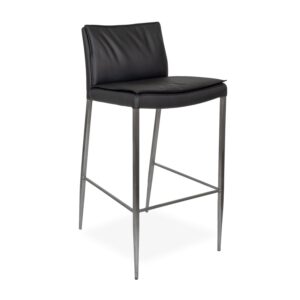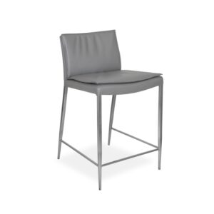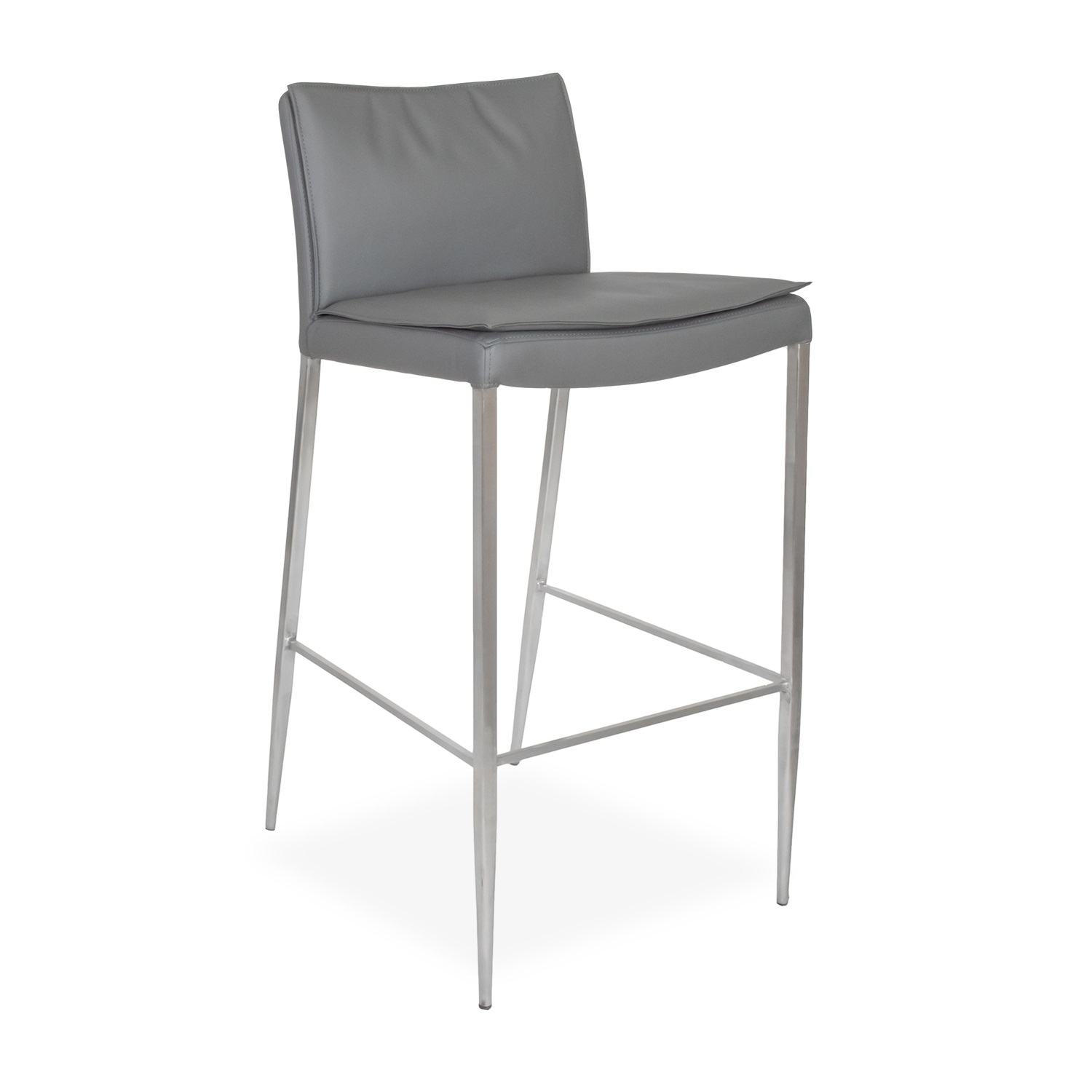 The Morris Soft Barstool has a clean, minimalist look, with a chrome brushed stainless steel frame and soft leatherette upholstery in grey. Matching stitching and the layered design of the cushions add a graceful touch, while the extra cushioning on the seat and back boost your comfort. Morris is proof that, sometimes, less is more.