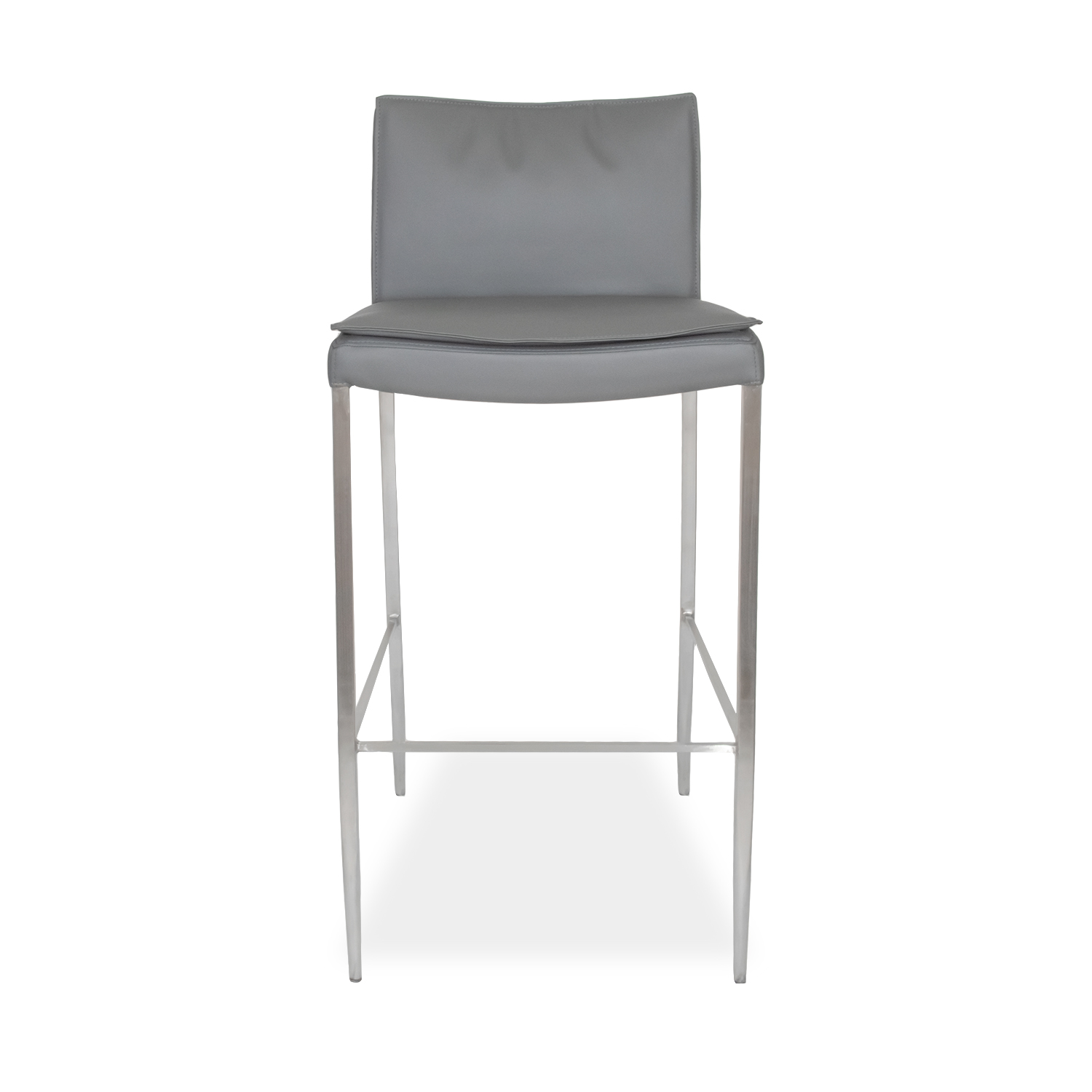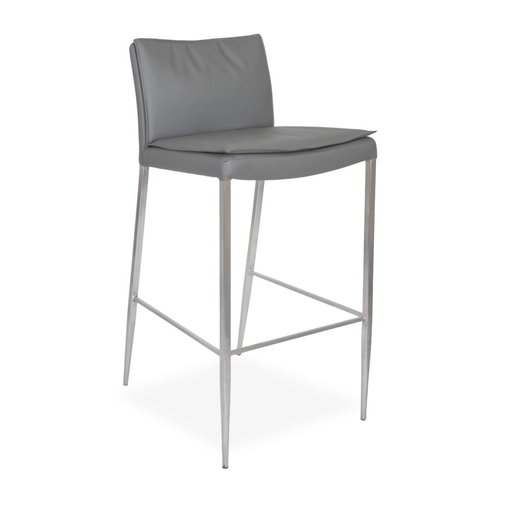 [0] => morris soft barstool grey pu18 leatherette. matching stitch. brushed stainless steel legs