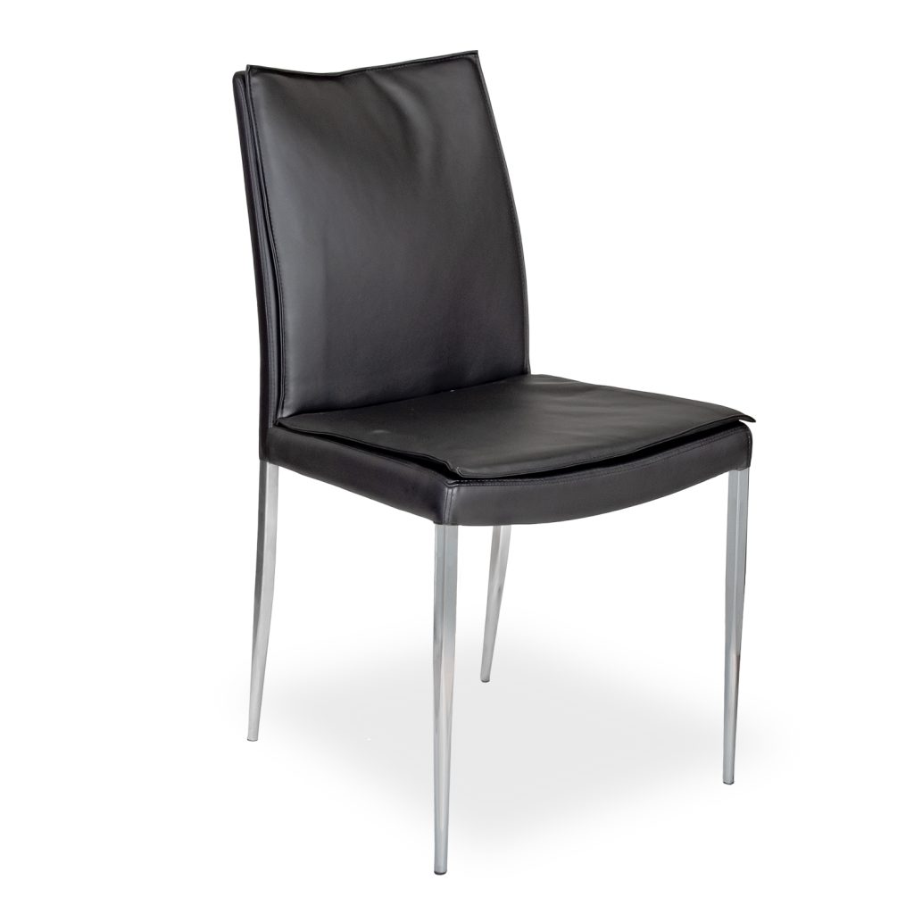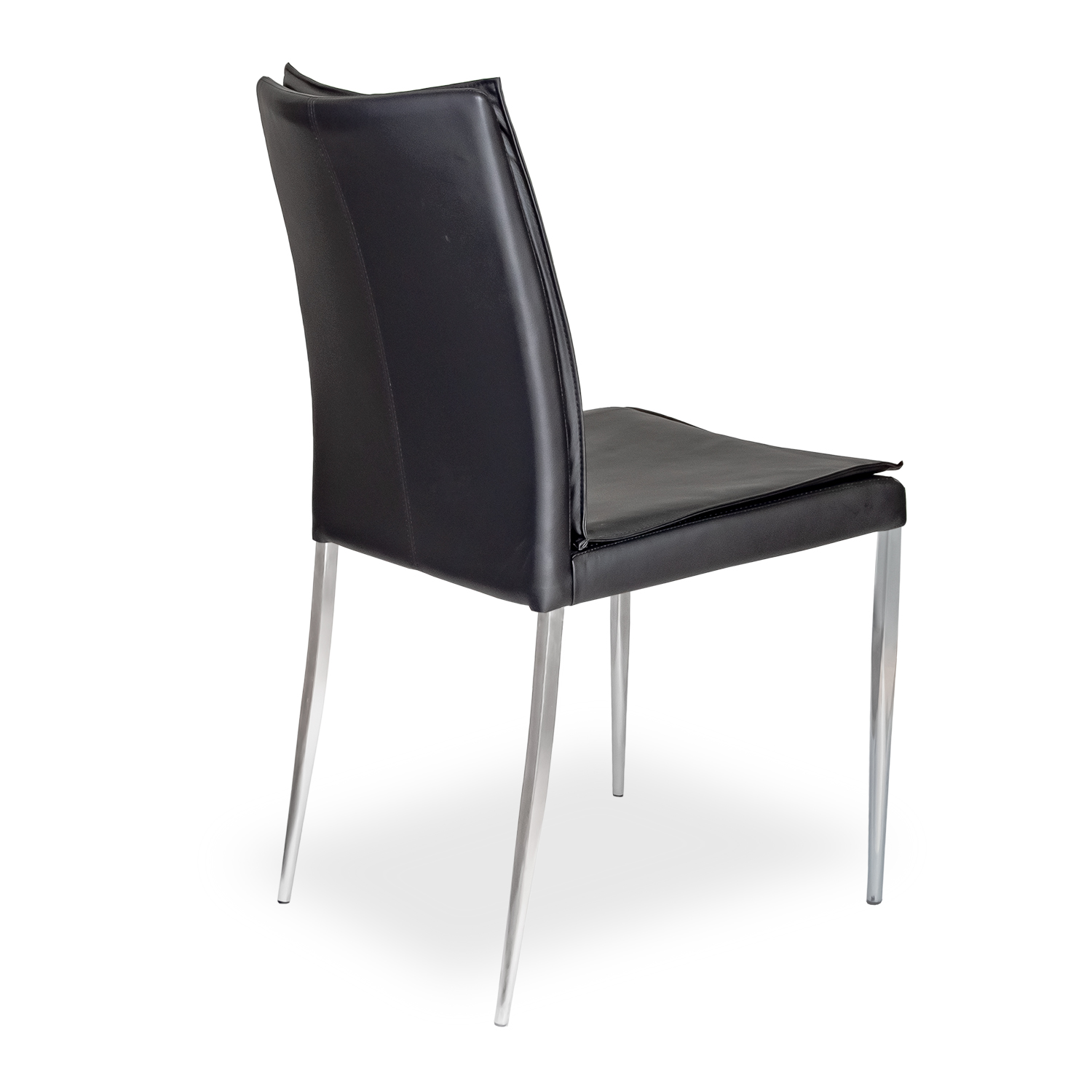 [0] => morris soft side chair black pu19 leatherette. matching stitch. brushed stainless steel legs