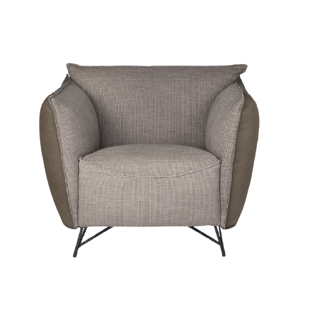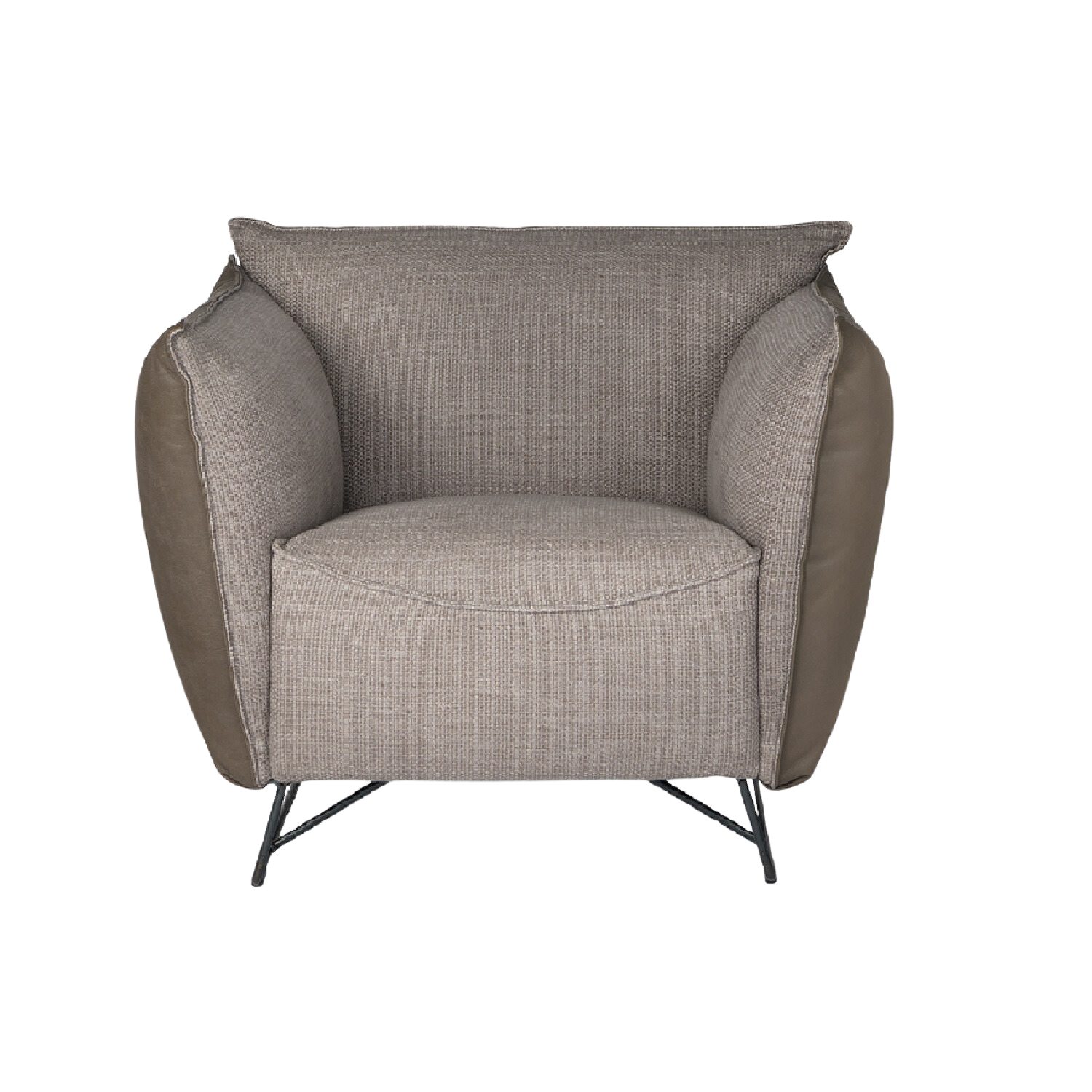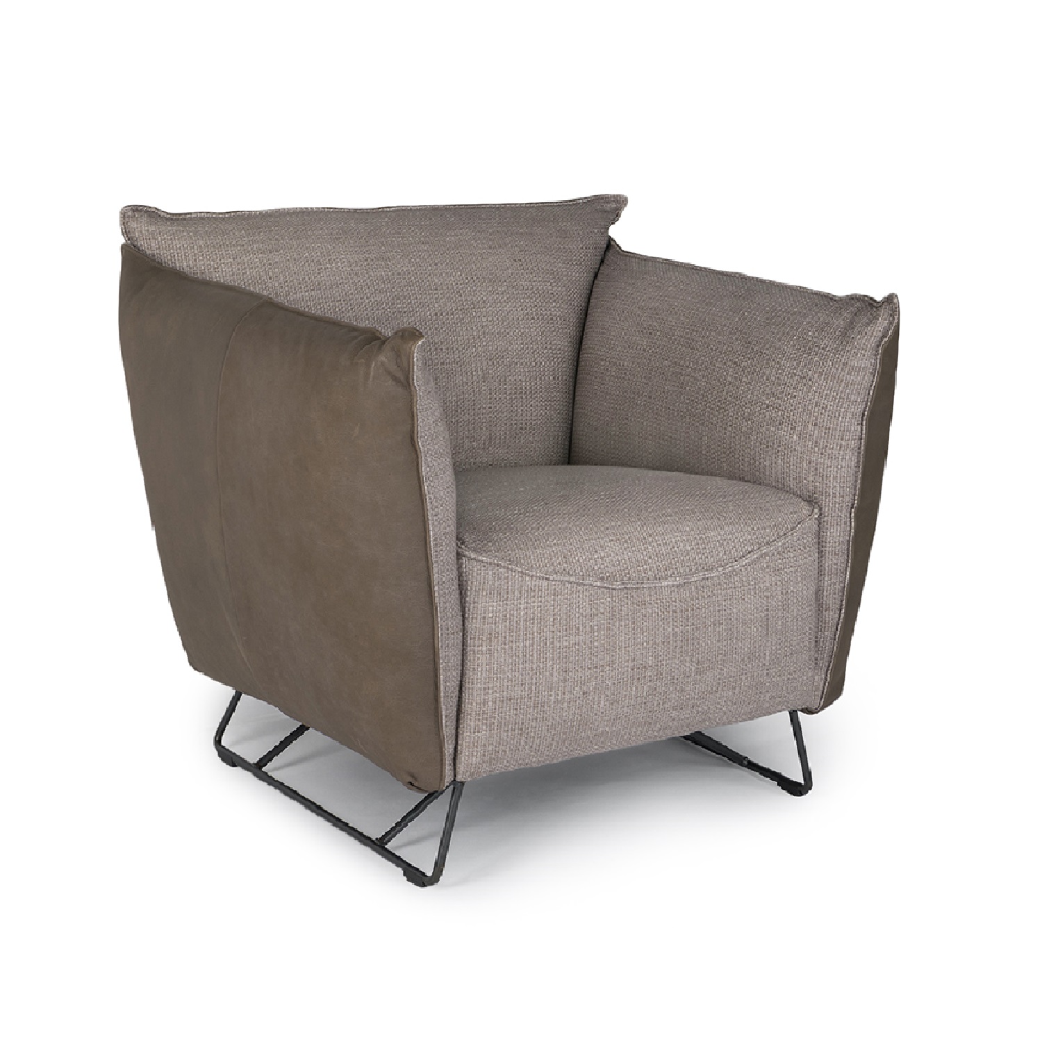 [2] => Shown in grey Bonanza saddle leather and ash grey Antwerp fabric upholstery, with an Old Glory metal frame. Pair with the matching My Home Sofa (sold separately) to fully transform your living space.