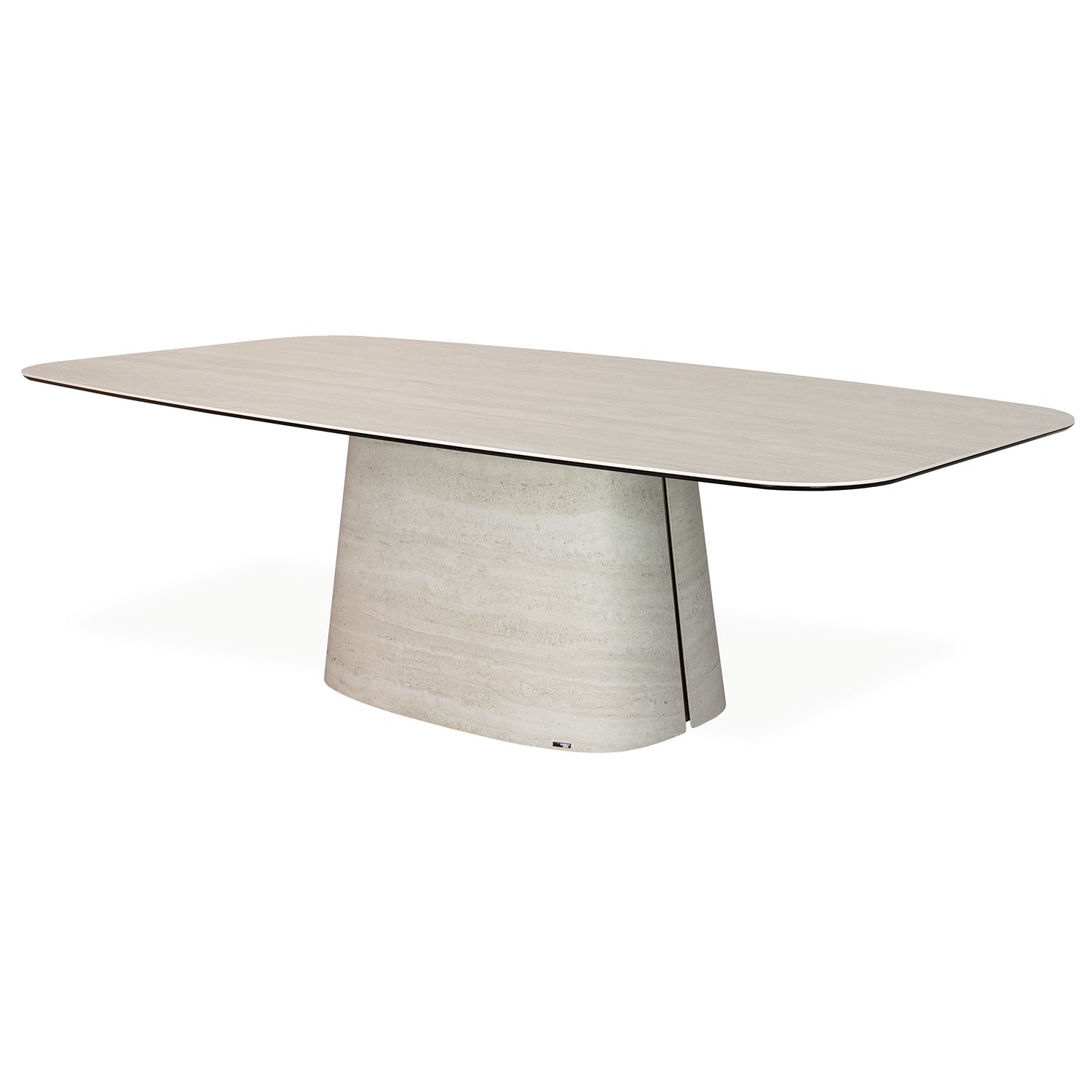 [0] => napoleon keramik dining table, 240 x 120 sag shaped top, top and base in km21 colosseo