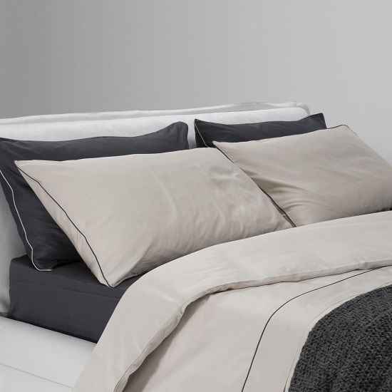 [0] => Natuzzi quilt cover and two pillow cases in grey linen for a king size bed.