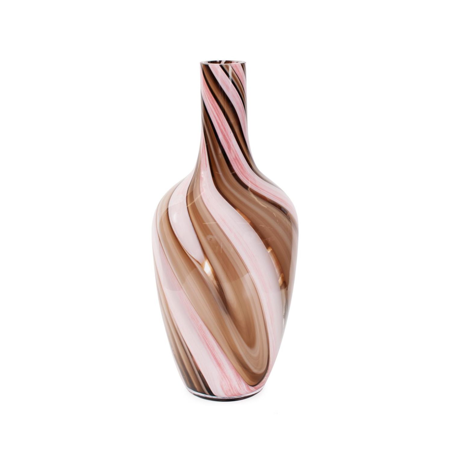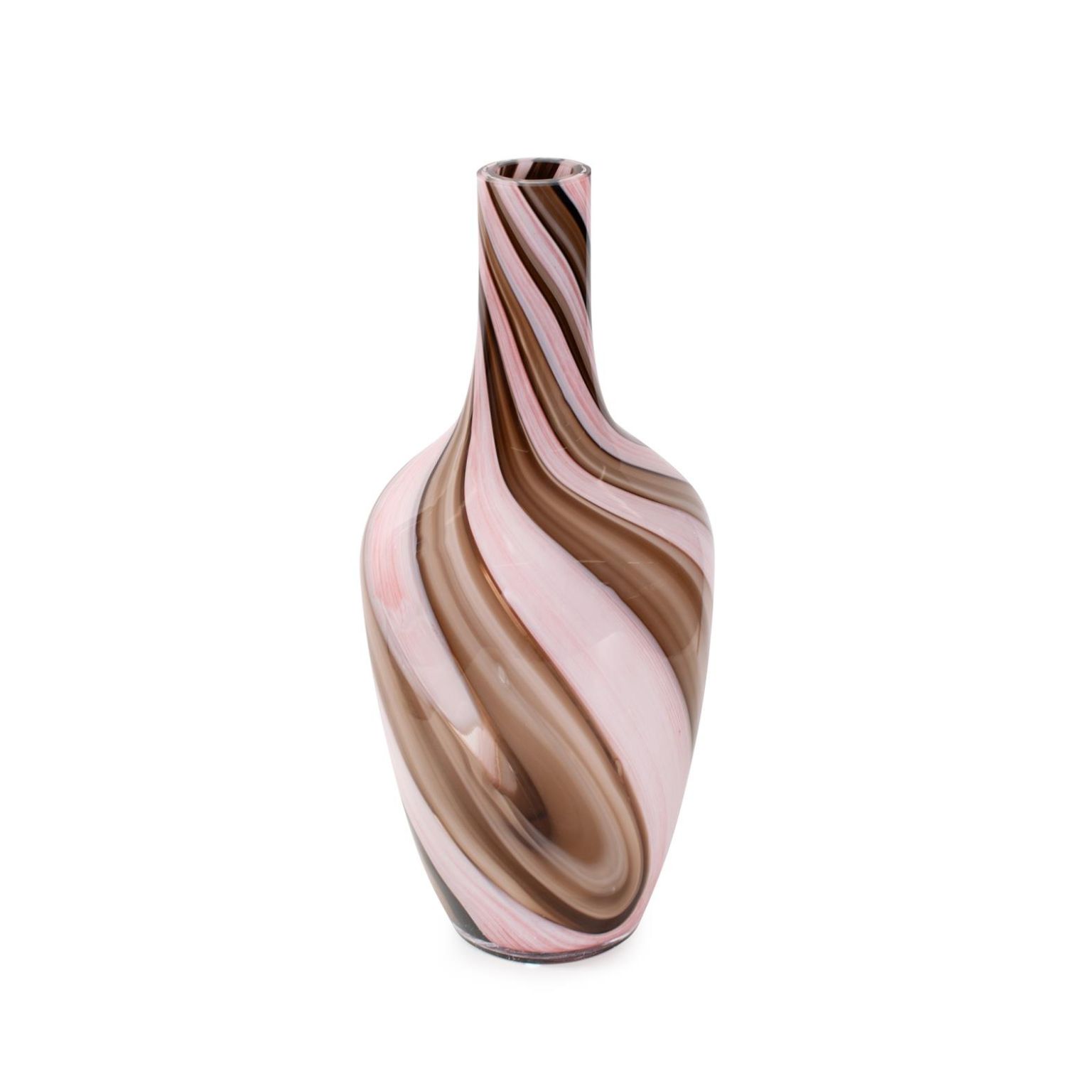 The Neapolitan Tall Vase is handcrafted from glass and features a swirled pattern in chocolate brown and strawberry pink. With a gently tapered body that narrows into a slender neck, the Neapolitan Vase is ideal for housing a romantic bouquet or standing on its own as a playful accent.