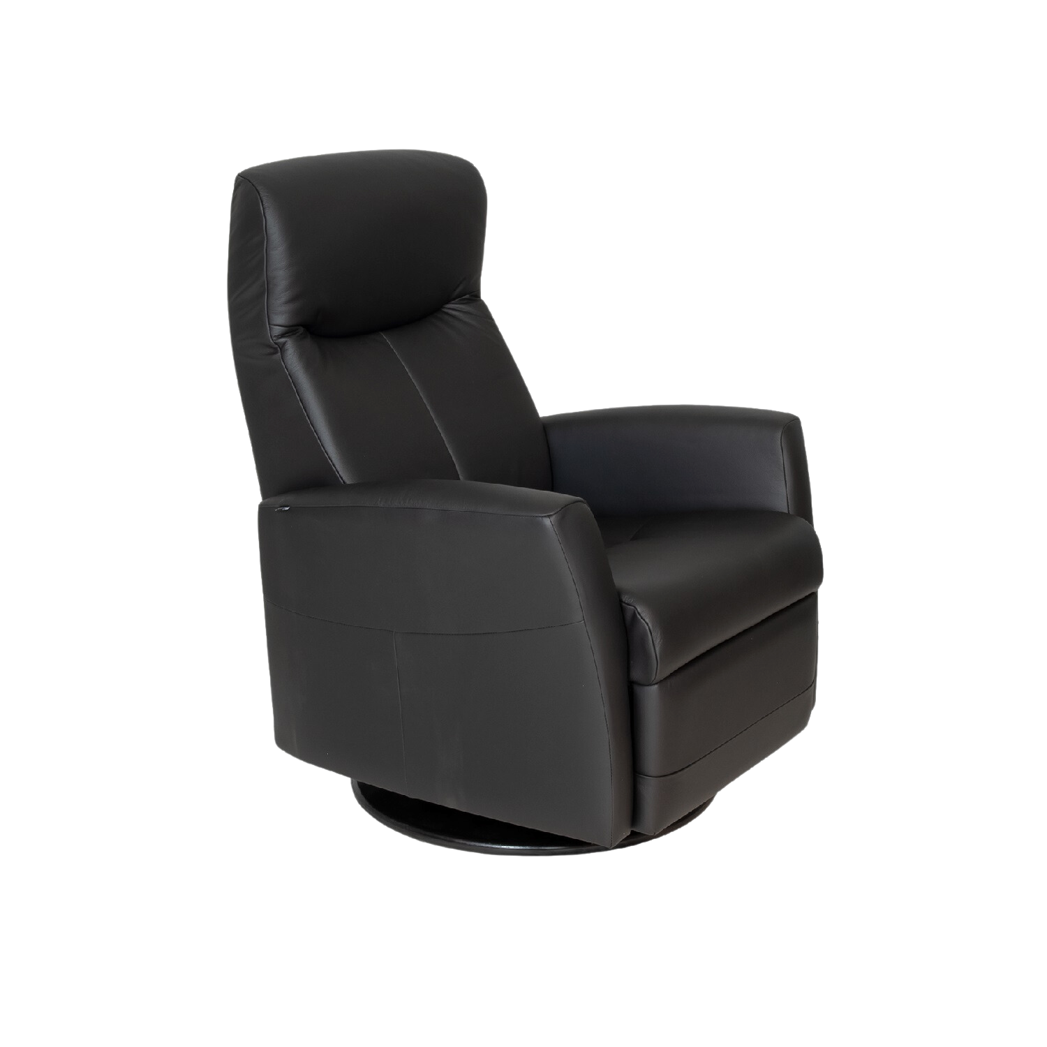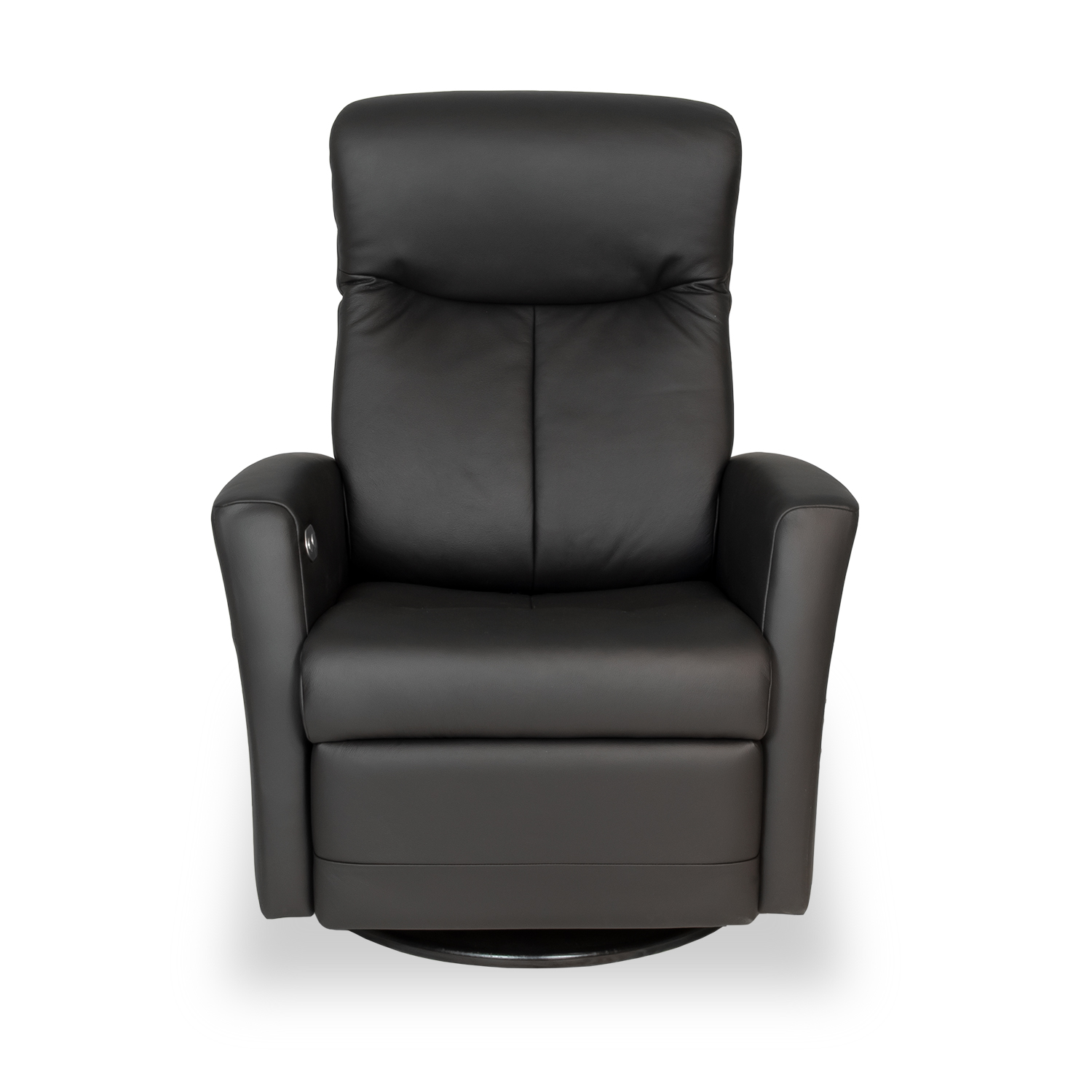 The Nice Large Power Recliner, available in black Nordic Line leather, features swivel, rocker, and glider functions alongside power motion to enhance your comfort to the highest degree. Matching stitching gives Nice a sleek, tailored look that is complemented by the round black base. Easily accessible buttons on the inner arm make it effortless to recline to your ideal position.