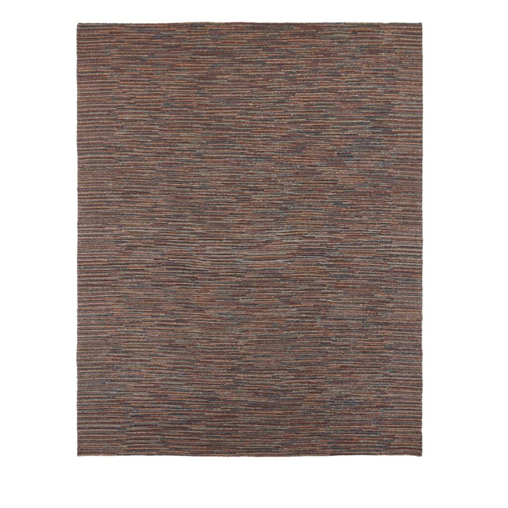 The Nido rug is contemporary with variegated tones of red. Nido is handcrafted with 100% Silkette yarns and a flat Soumak weave.