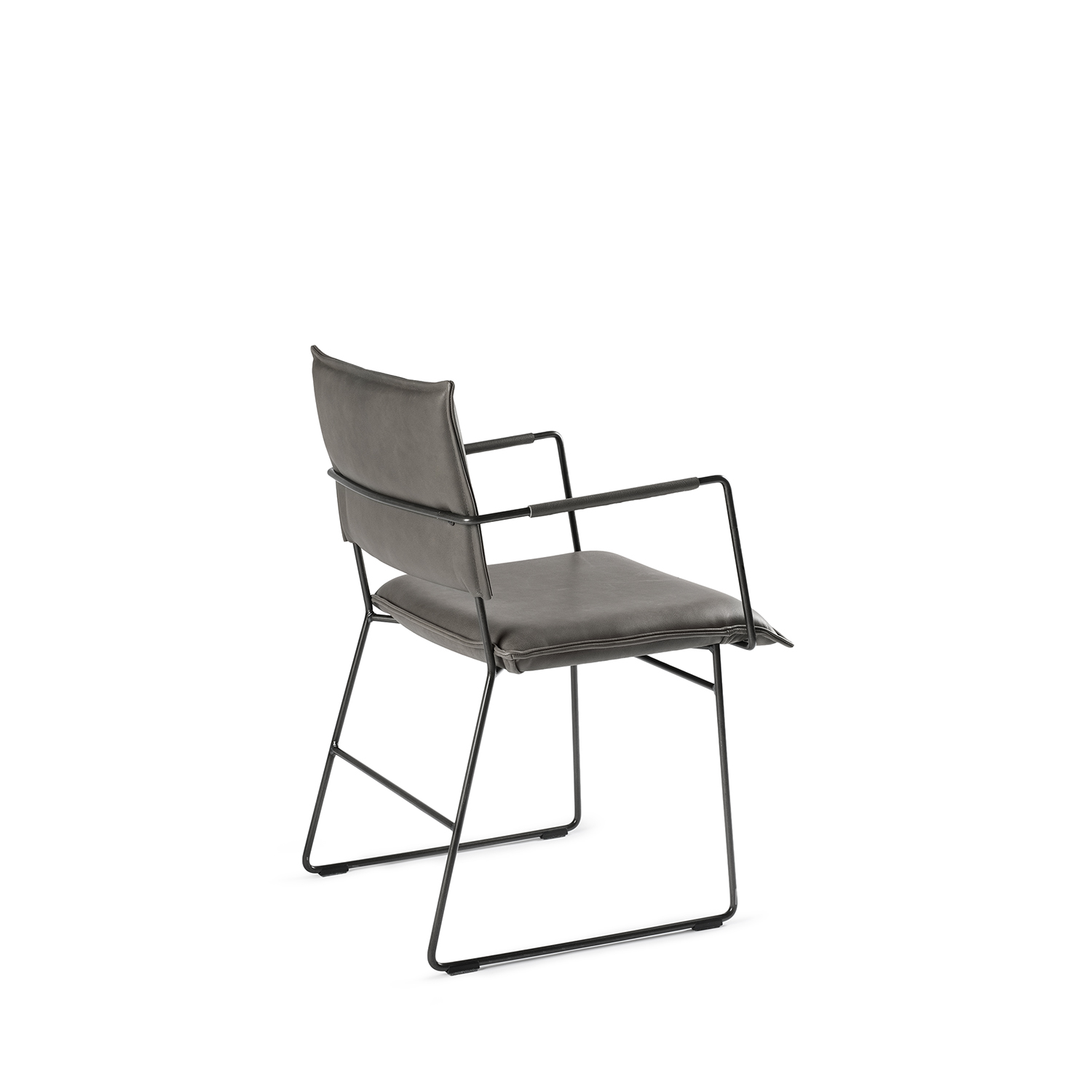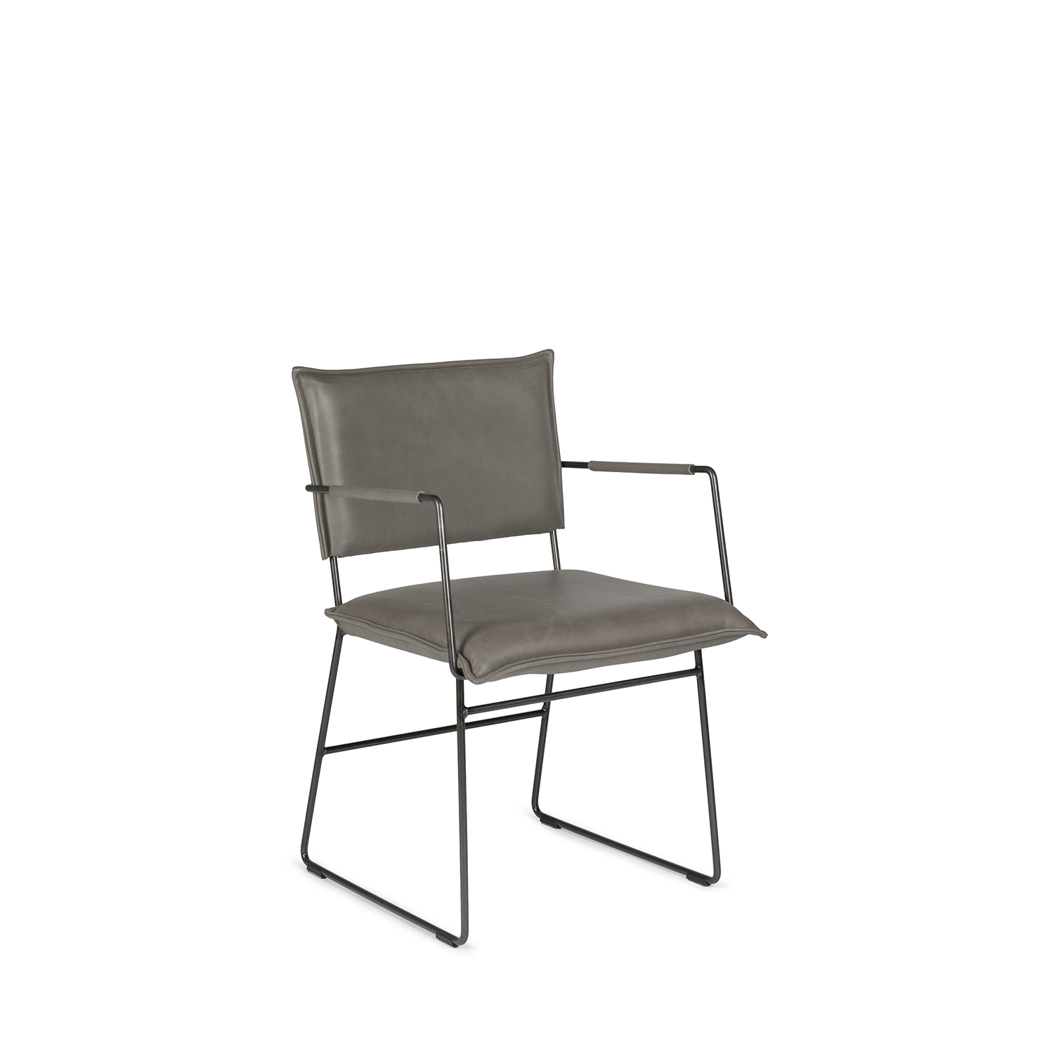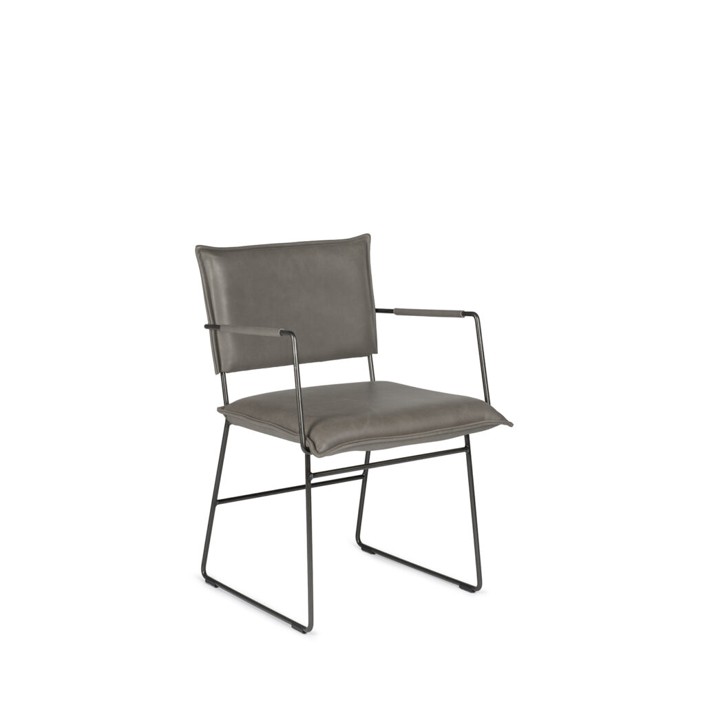 [0] => norman arm chair. frame in old glory metal, seat and back in bonanza grey top-grain leather