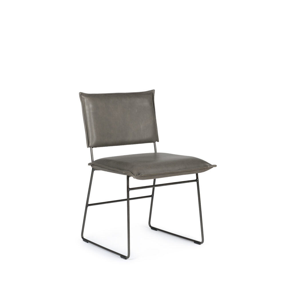 [0] => norman side chair armless with frame n old glory metal, seat and back in bonanza grey top-grain leather.