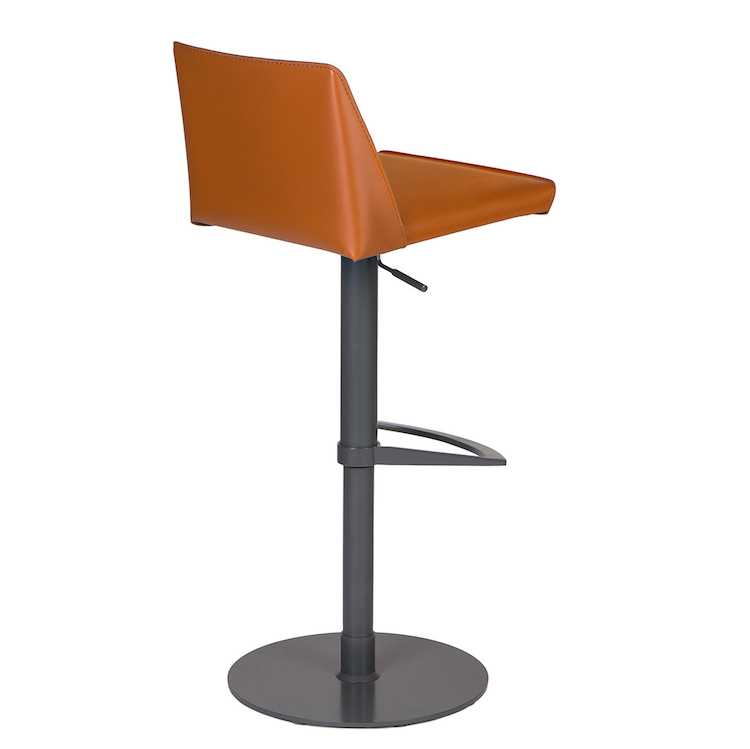 The Noro adjustable stool, available in cognac with an anthracite base, is a minimalist contemporary barstool with a crisp, linear silhouette and height adjustment capabilities.
