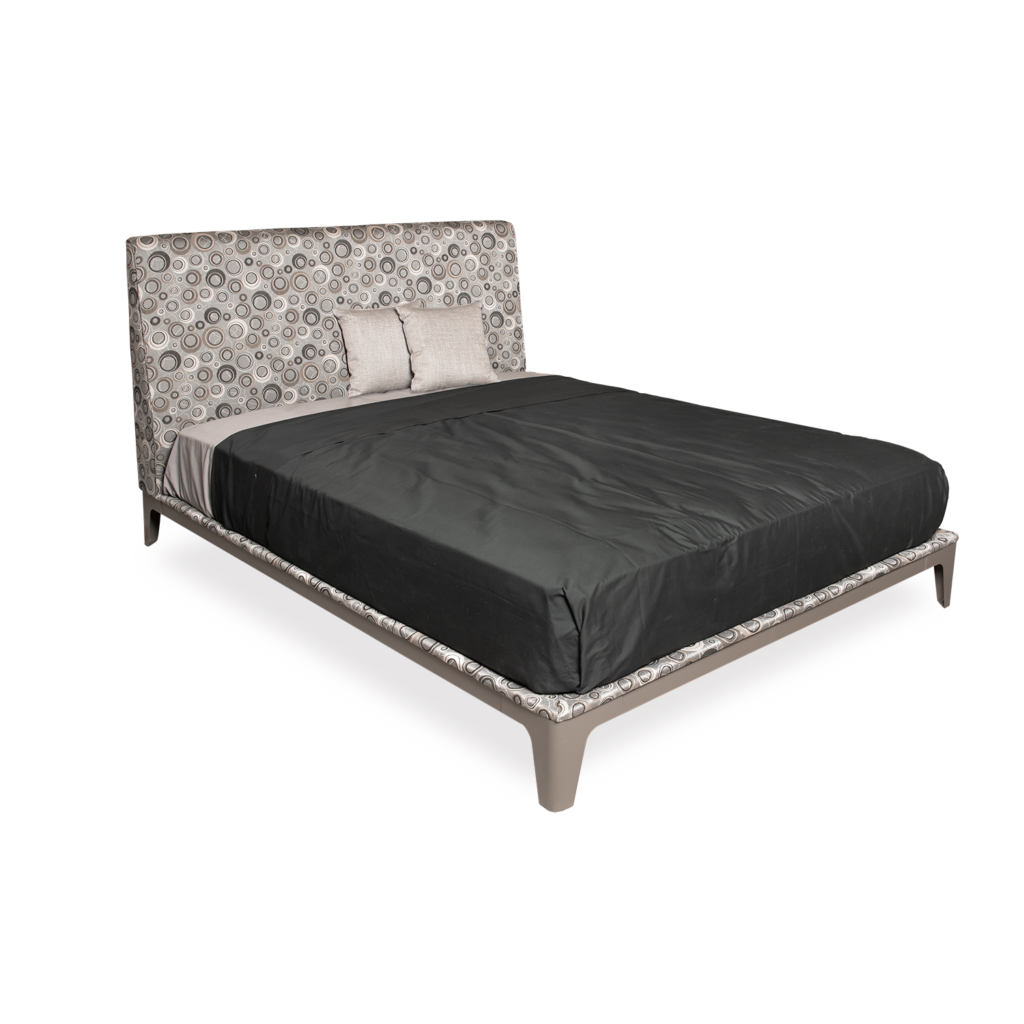 [0] => The Nuance King Bed features spaceship charocal fabric upholstery and a taupe metal frame, resulting in a cool-toned, balanced look. The thick, tapered headboard contrasts stikingly with the thin, sleek frame, and the spaceship charcoal fabric's circular pattern brings subtle tones of white, brown, and grey to your space.