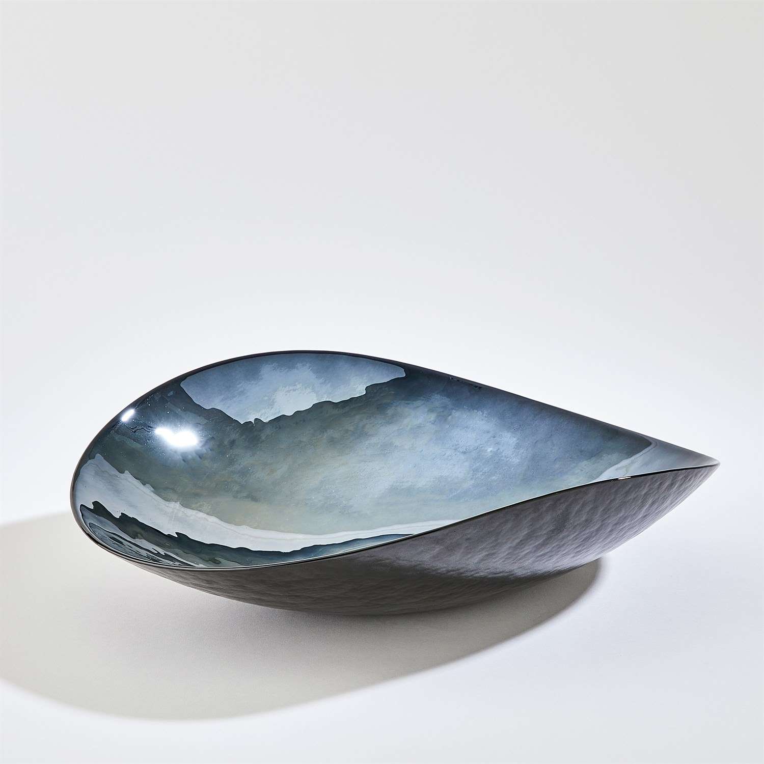 Handcrafted by Italian artisans on the island of Murano, the Obsidian Folded Plate features a striking metallic black finish full of depth and reflective tones. Created from molten glass and cooled into a stable art glass piece, this plate has a distinctive curved structure and iridescent look that makes it a captivating work of art. Obsidian is food safe and watertight.