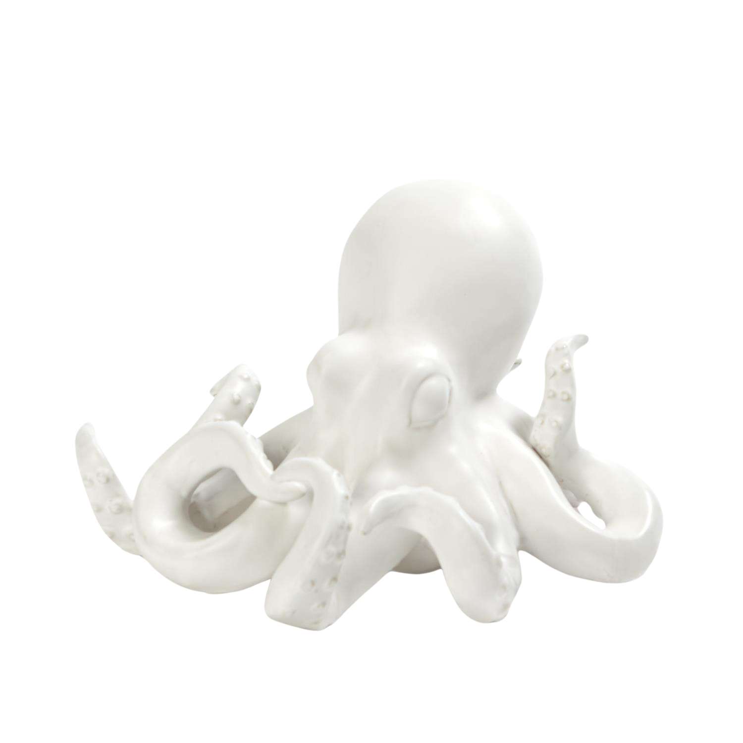 [0] => Inspired by the 19th century cabinet of curiosities, the Octopus Sculpture features a distinct otherworldly design that makes it a perfect conversational piece. The octopus' dynamic ceramic form details its sinuous tentacles and pronounced head, emphasizing its curious and playful nature, while its matte white finish allows it to easily integrate into a variety of design environments.