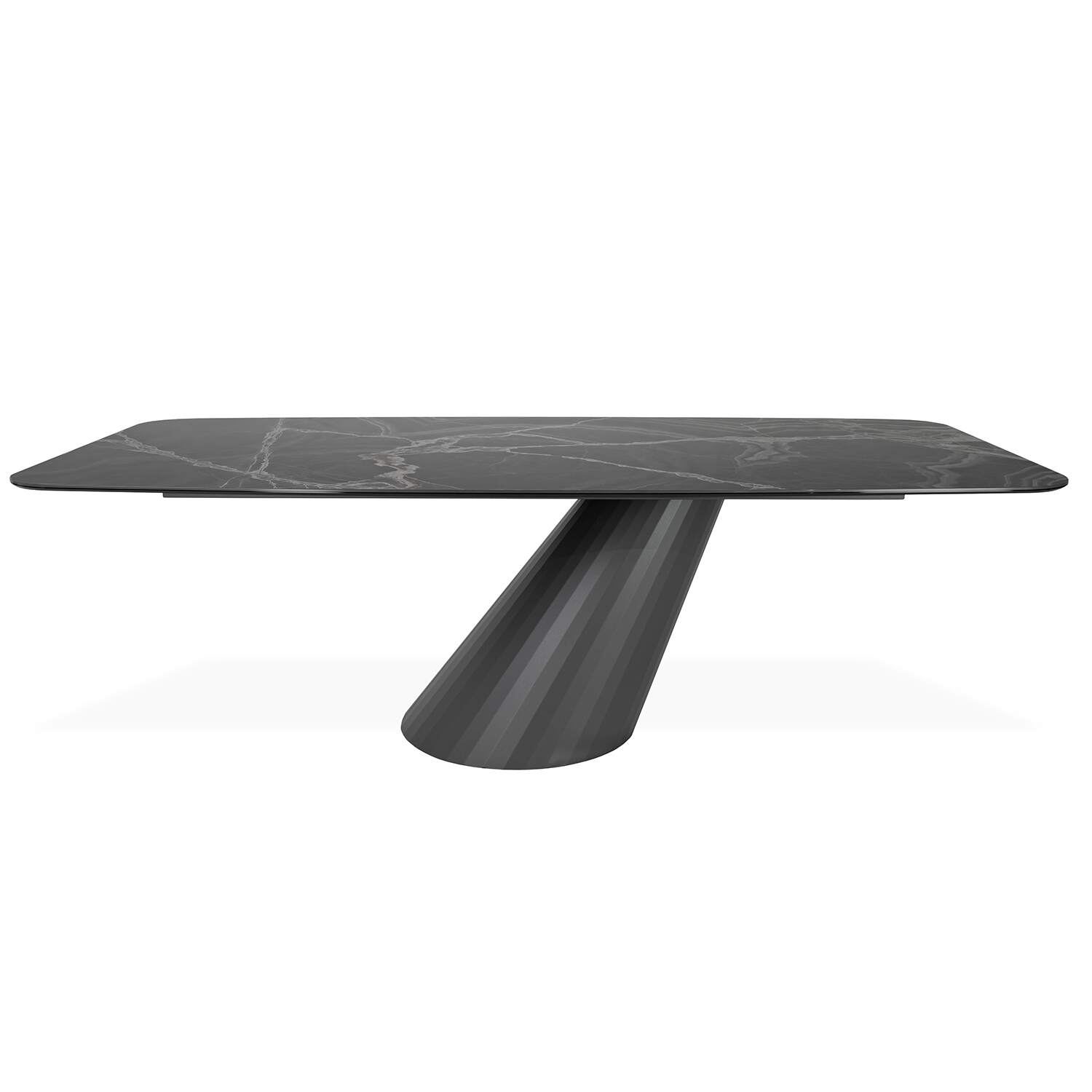 [0] => olimpia dining table with glossy black onyx porcelain top 95 in x 47 in, cantilever metal base in matt anthracite ral-7016